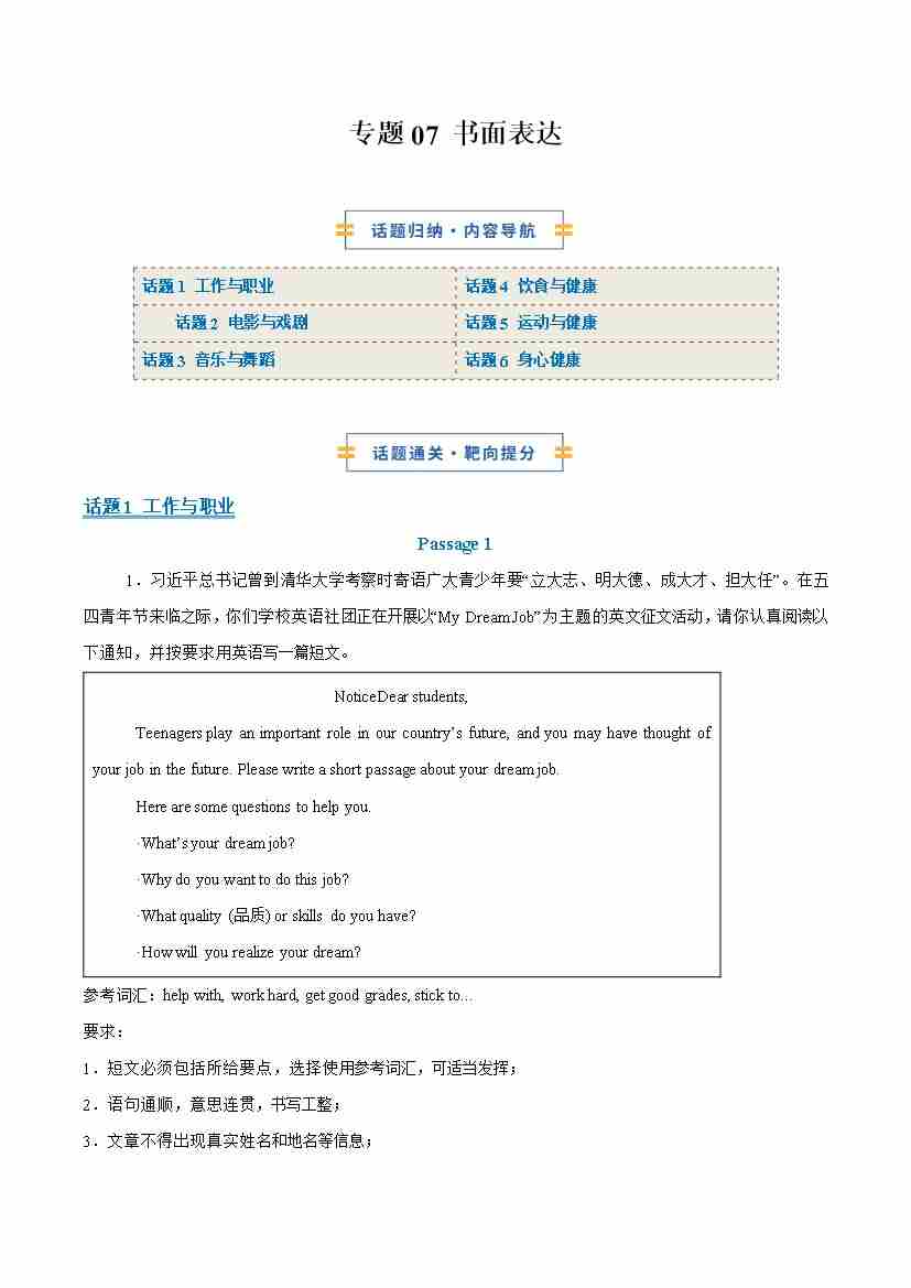 考前押题07 书面表达20题(期中专项训练)八年级英语上学期新教材仁爱科普版(解析版)