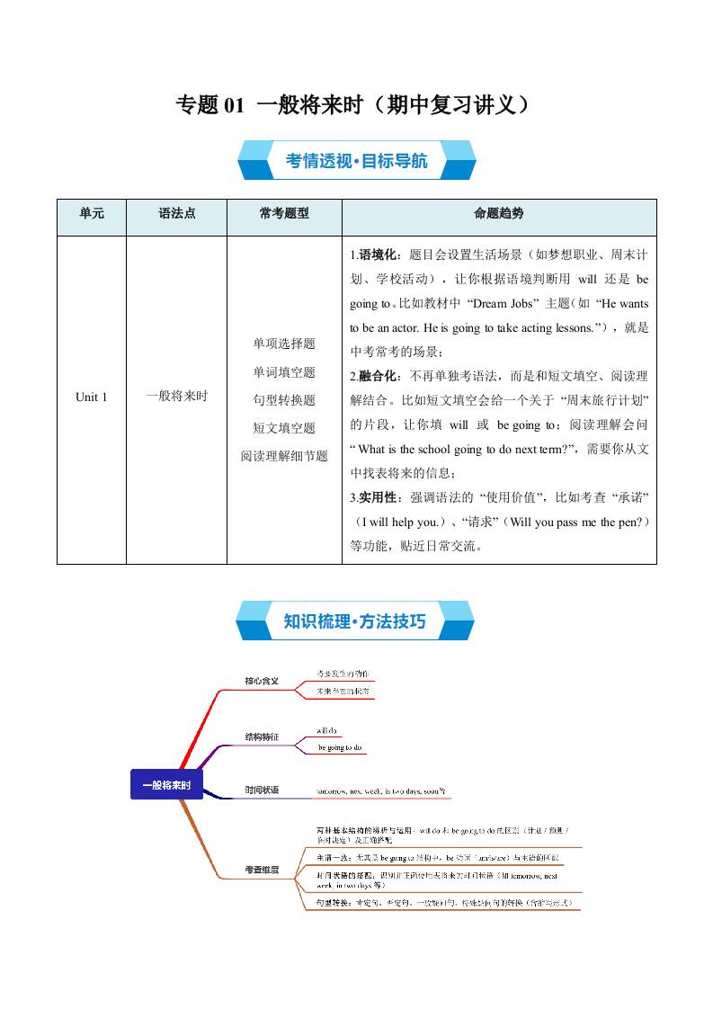 专题01 一般将来时(期中复习讲义)(解析版)·1
