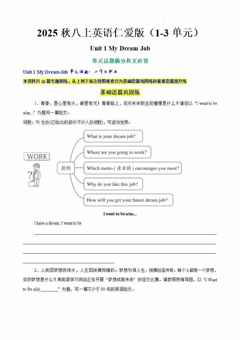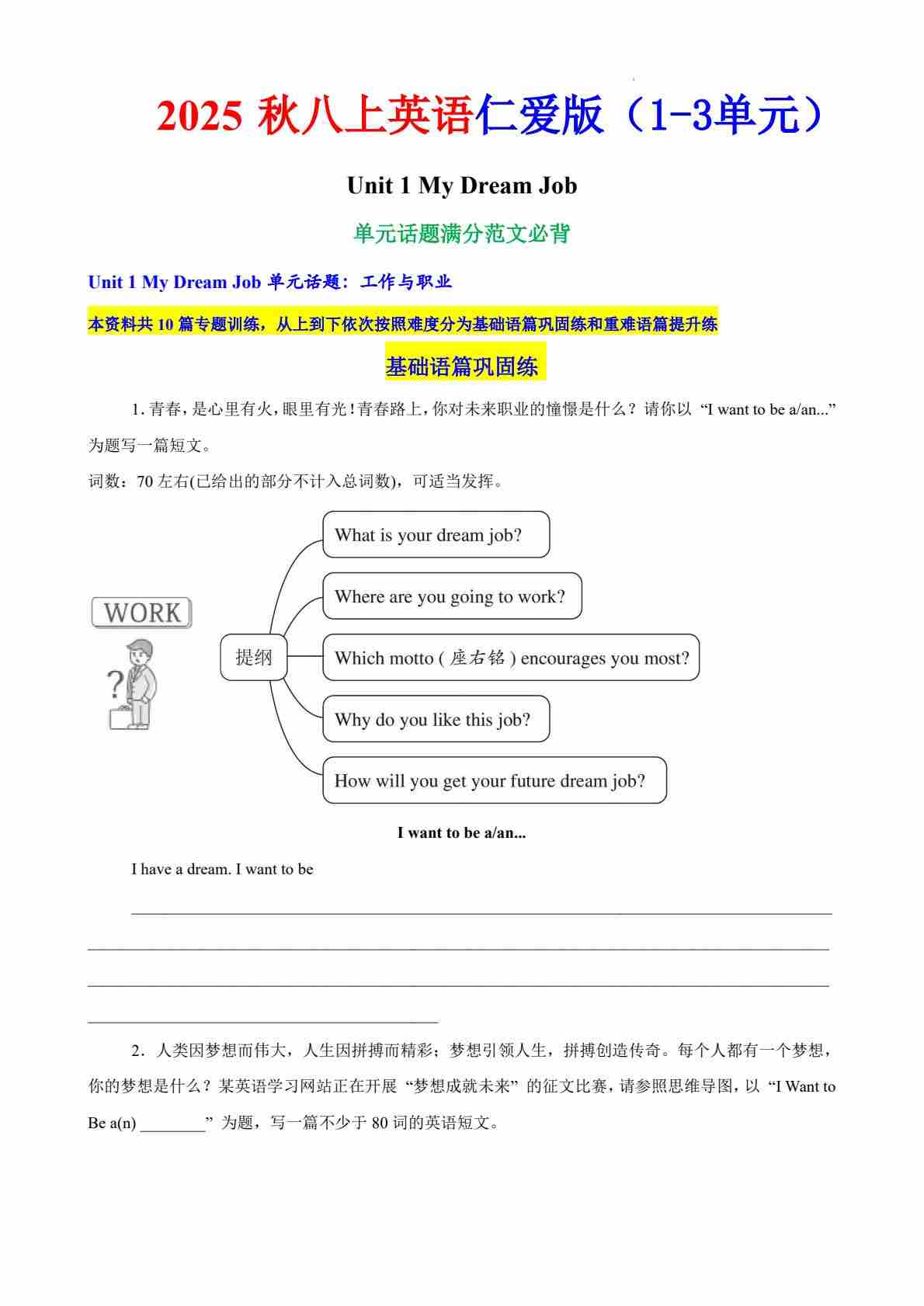 八上英语仁爱Unit 1-Unit3单元话题满分范文必背(合并版)PDF
