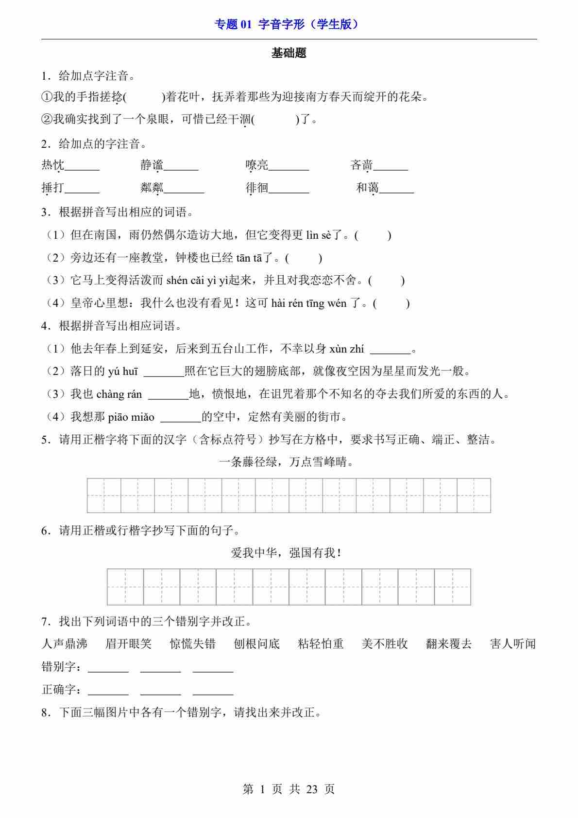 专题01 字音字形---