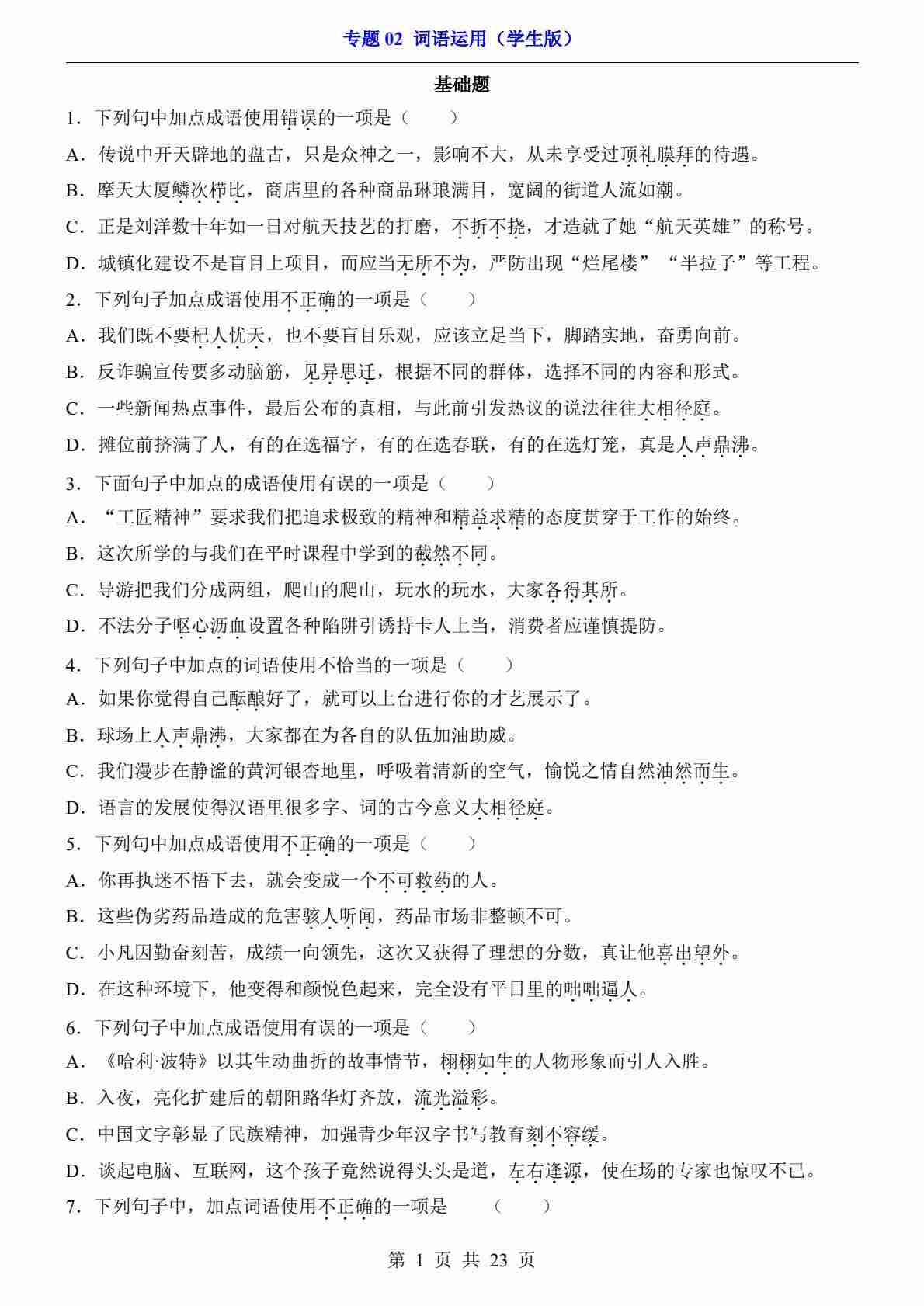 专题02 词语运用