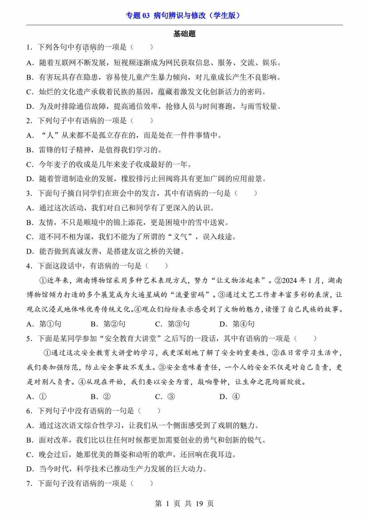 专题03 病句辨识与修改