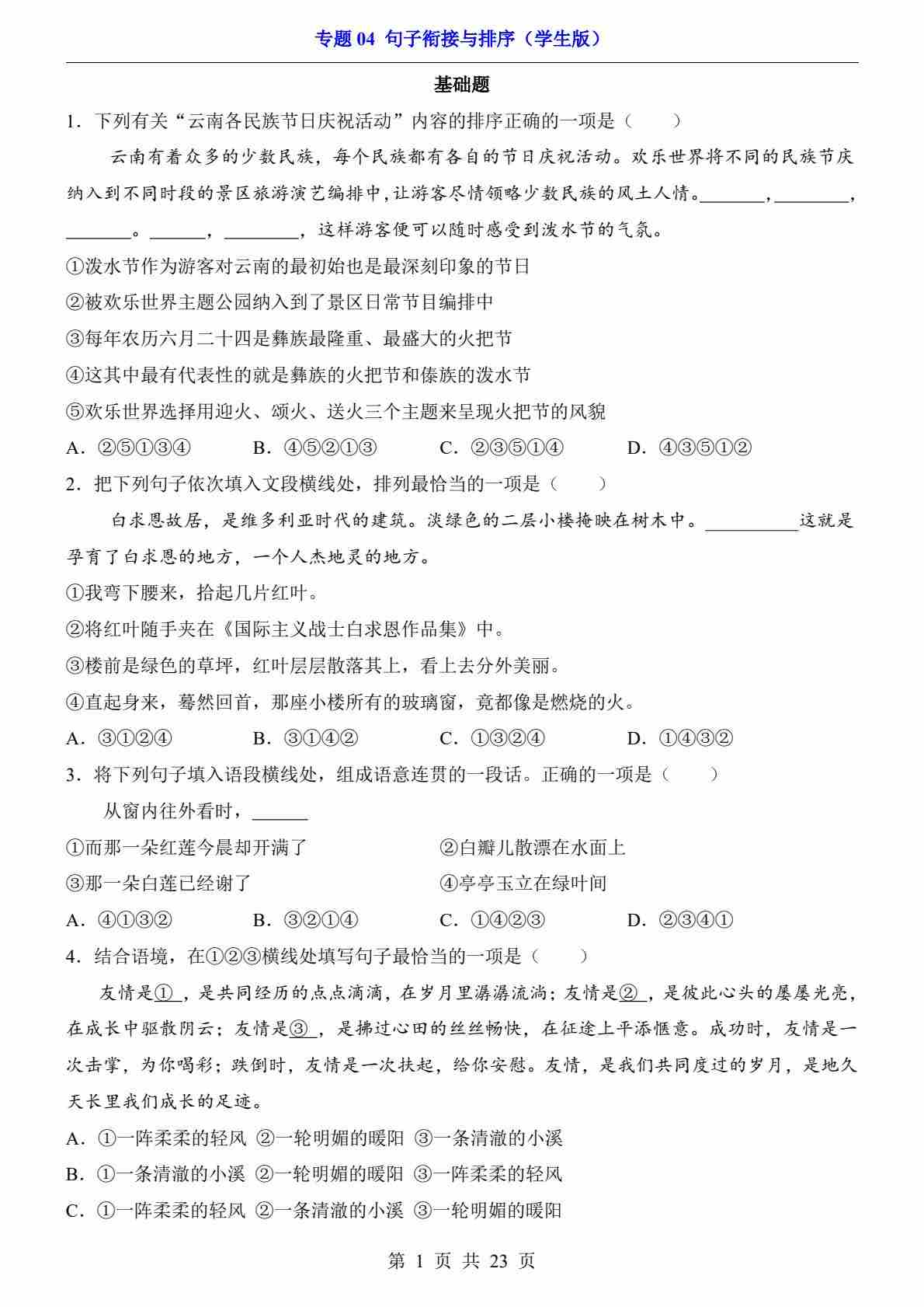 专题04 句子衔接与排序
