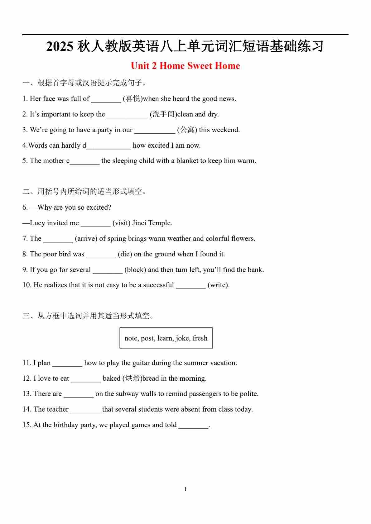 UNIT 2 Home Sweet Home--