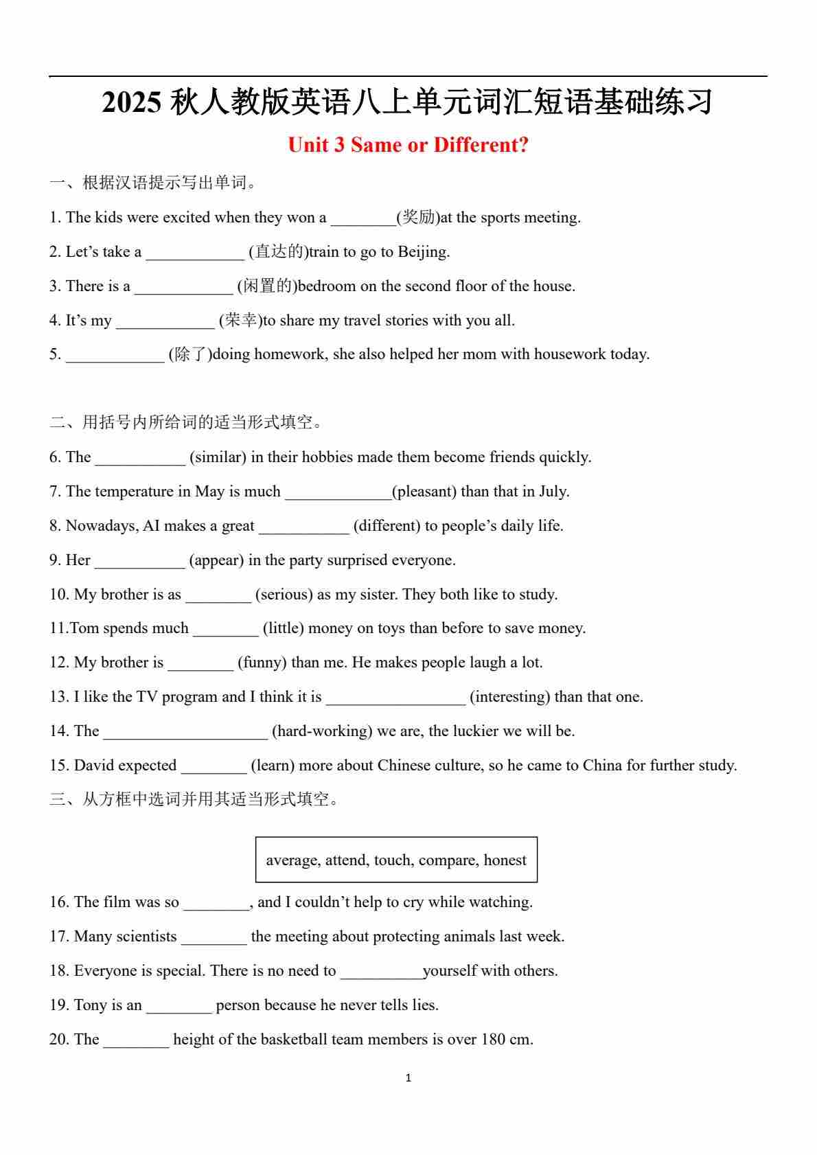 UNIT 3 Same or Different?---