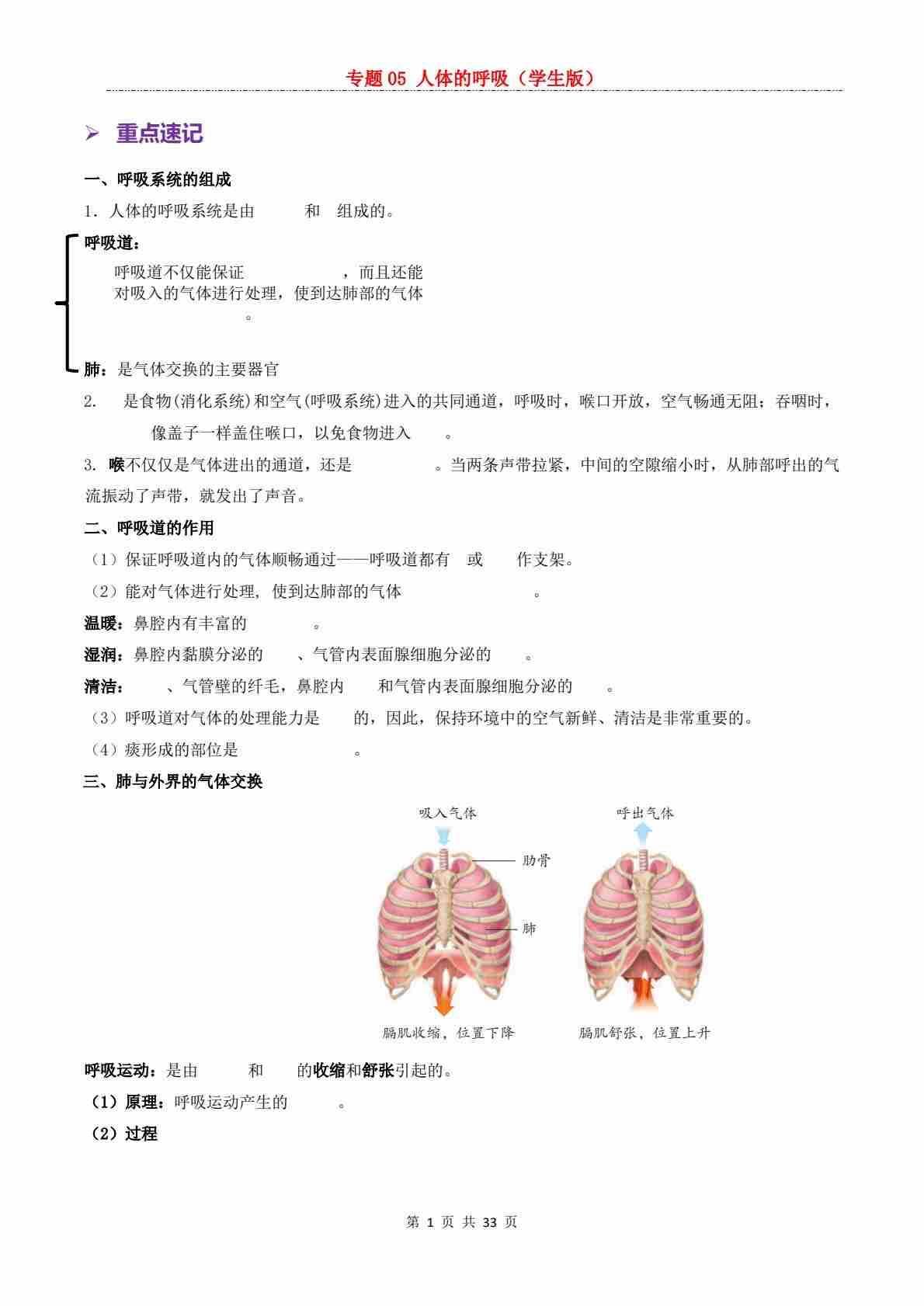 【复习讲义】专题05 人体的呼吸