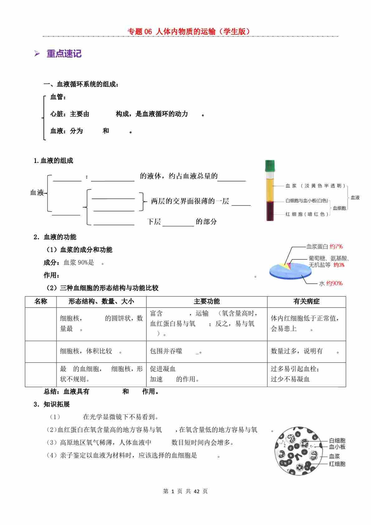 【复习讲义】专题06 人体内物质的运输