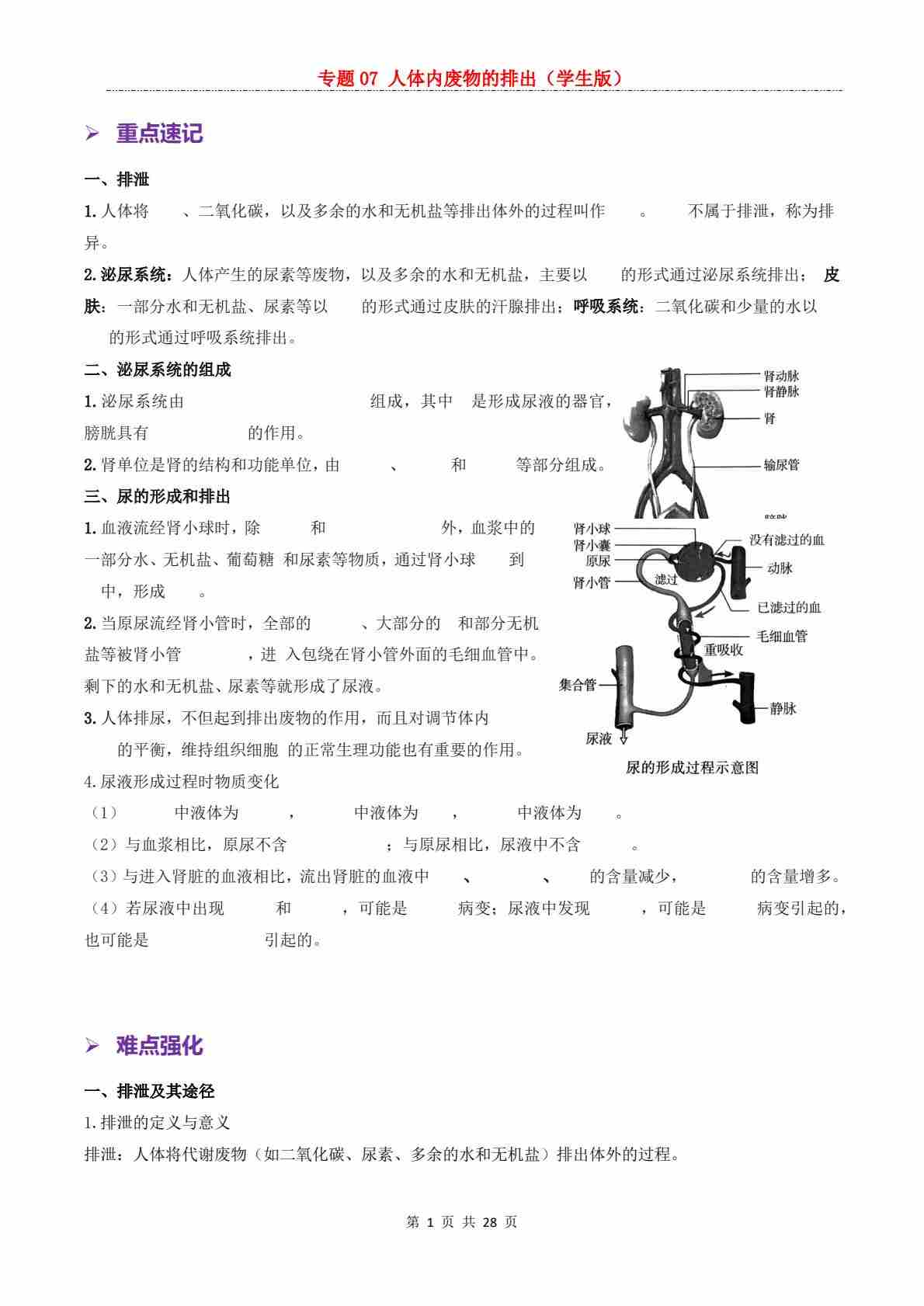 【复习讲义】专题07 人体内废物的排出
