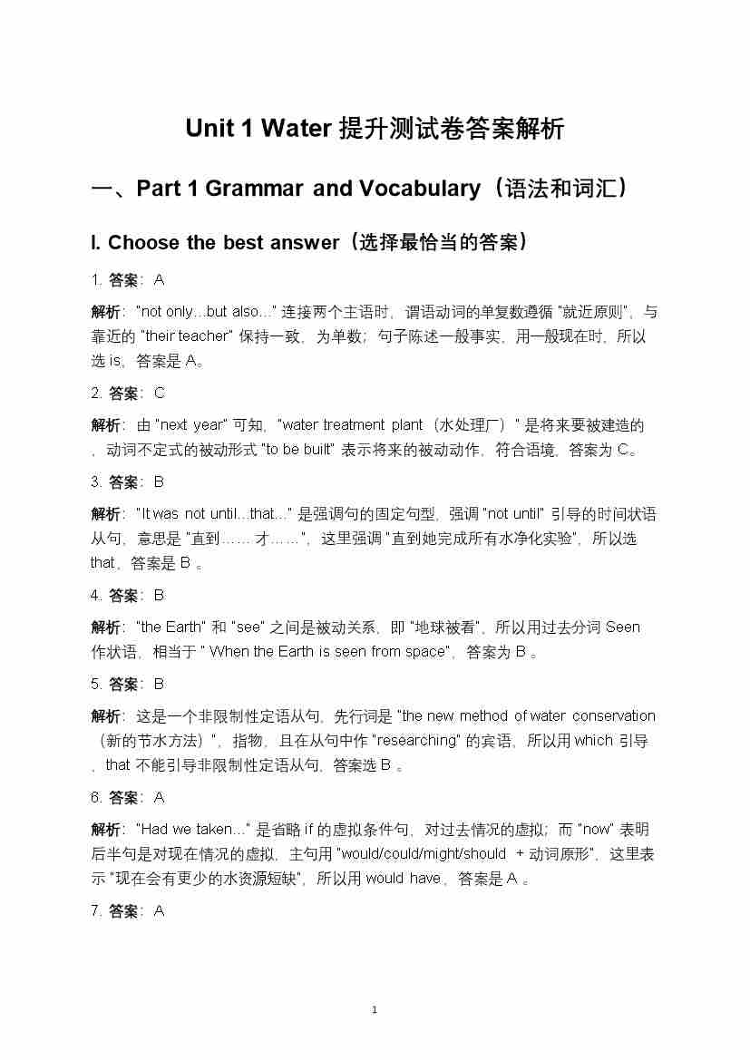 沪教版(五四制)八年级上册Unit 1 Water 提升测试卷答案解析--沪教54版