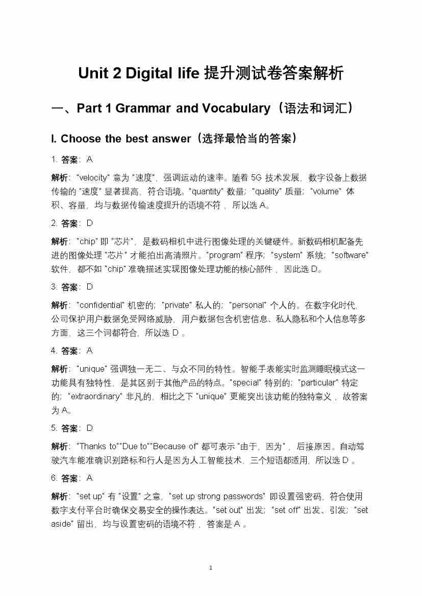沪教版(五四制)八年级上册Unit 2 Digital life提升测试卷答案解析--沪教54版