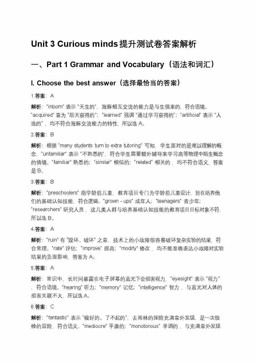 沪教版(五四制)八年级上册Unit 3 Curious minds提升测试卷答案解析--沪教54版