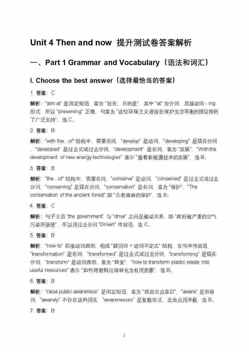 沪教版(五四制)八年级上册Unit 4 Then and now 提升测试卷答案解析--沪教54版
