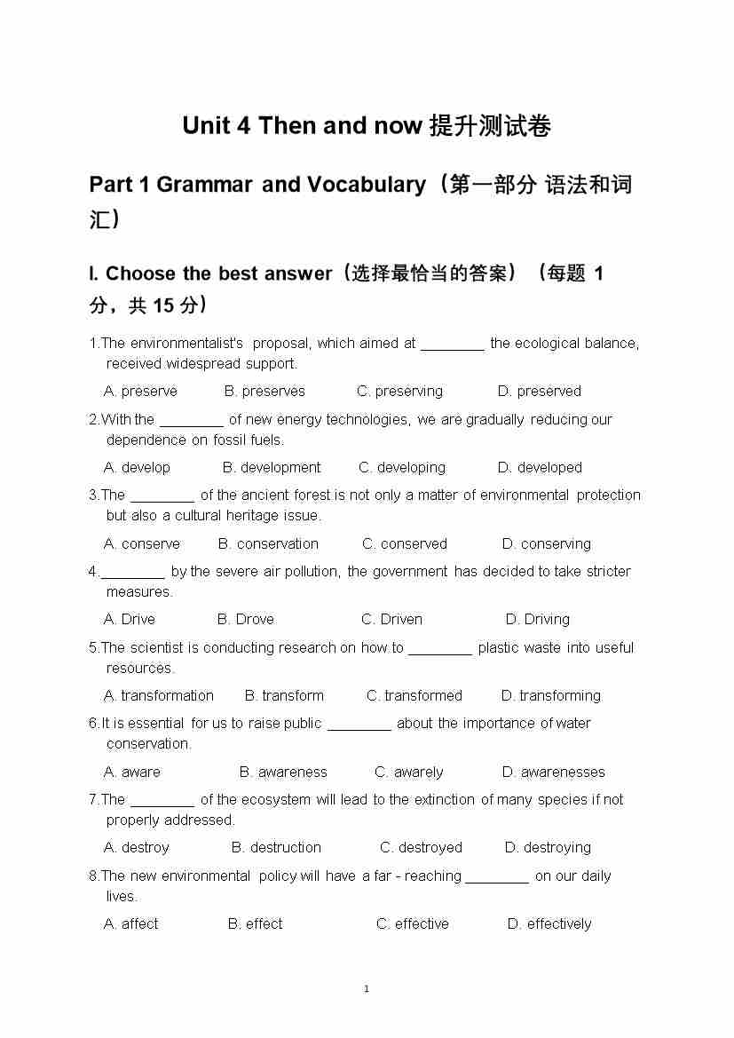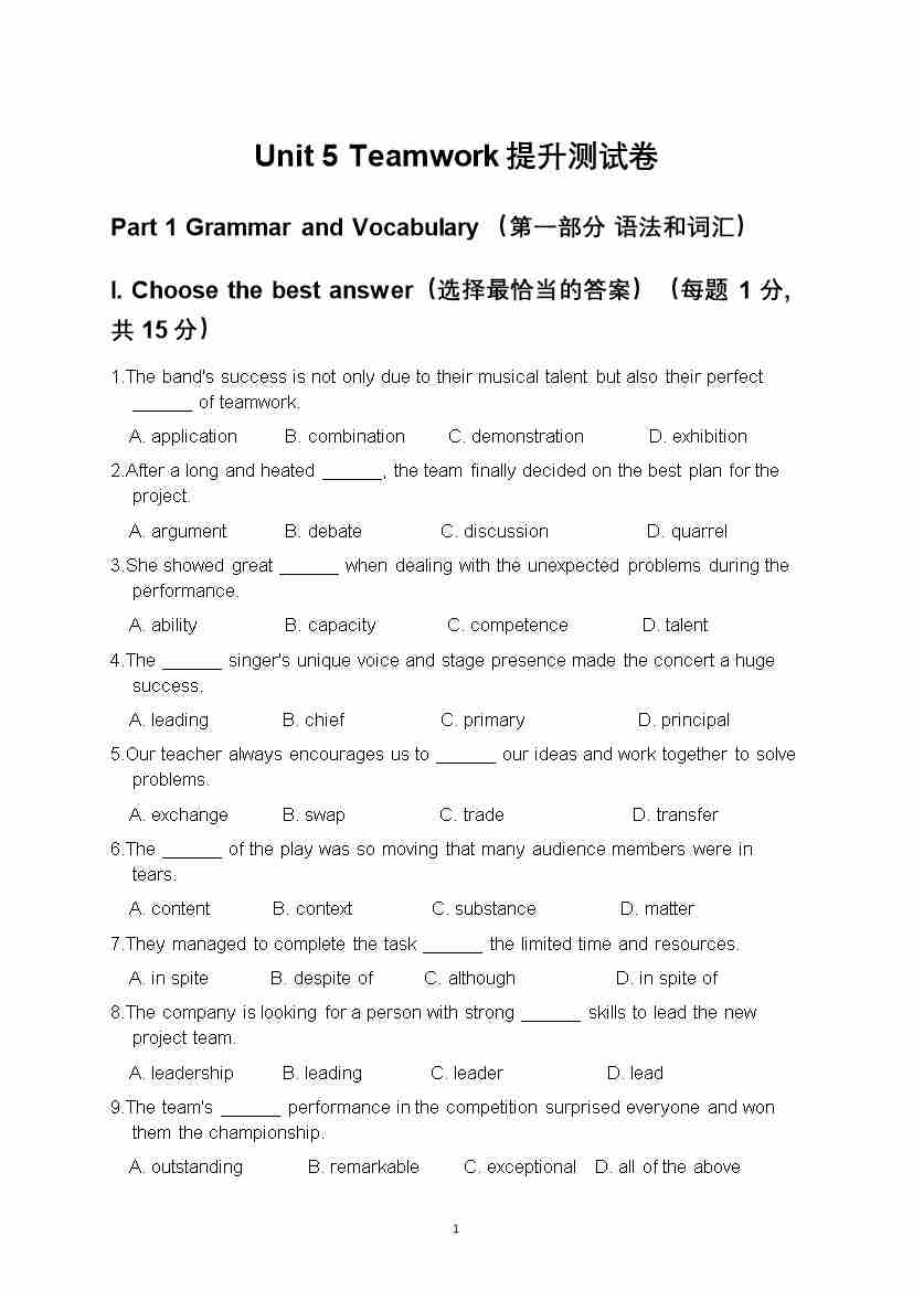 单元提升卷