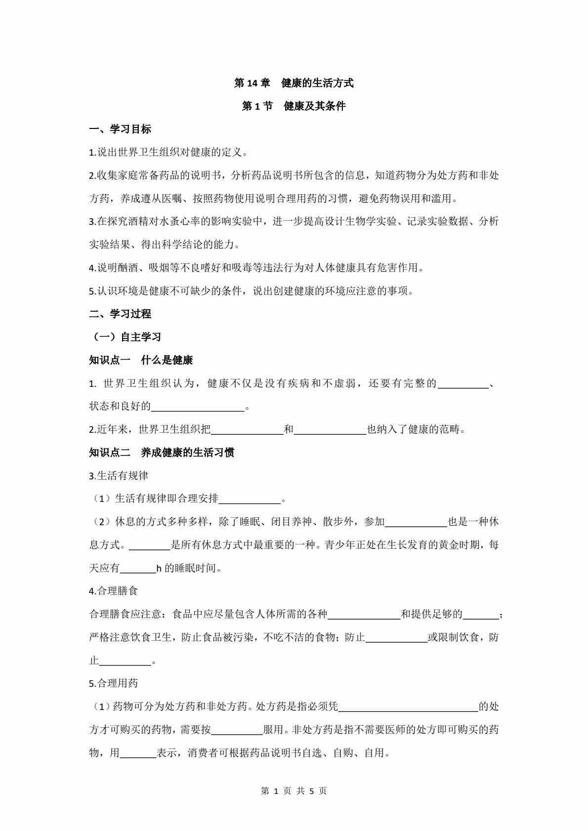 5.14.1 健康及其条件 学案(含答案)