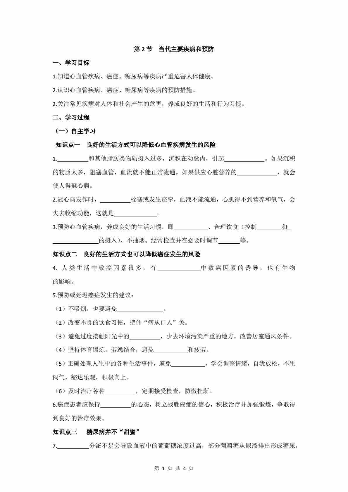 5.14.2 当代主要疾病和预防 学案(含答案)