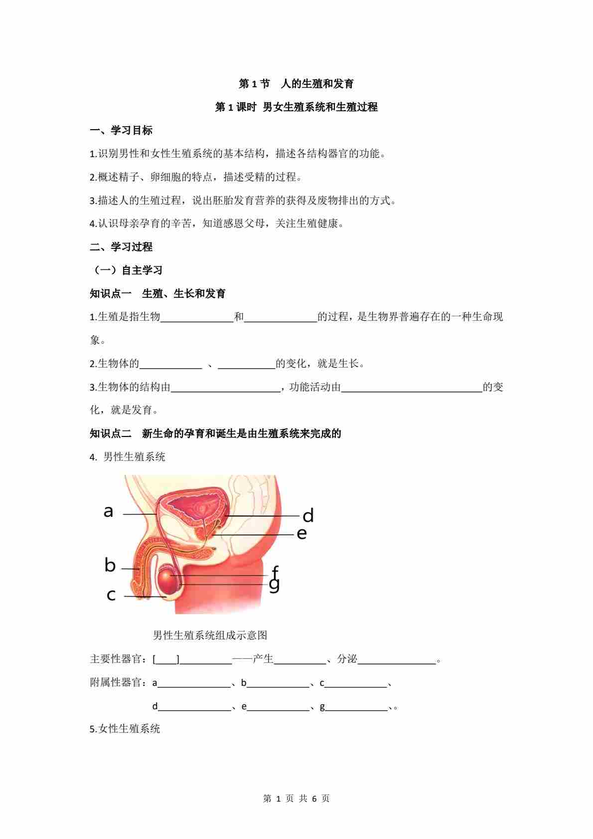 6.15.1 第1课时 男女生殖系统和生殖过程 学案 (含答案)