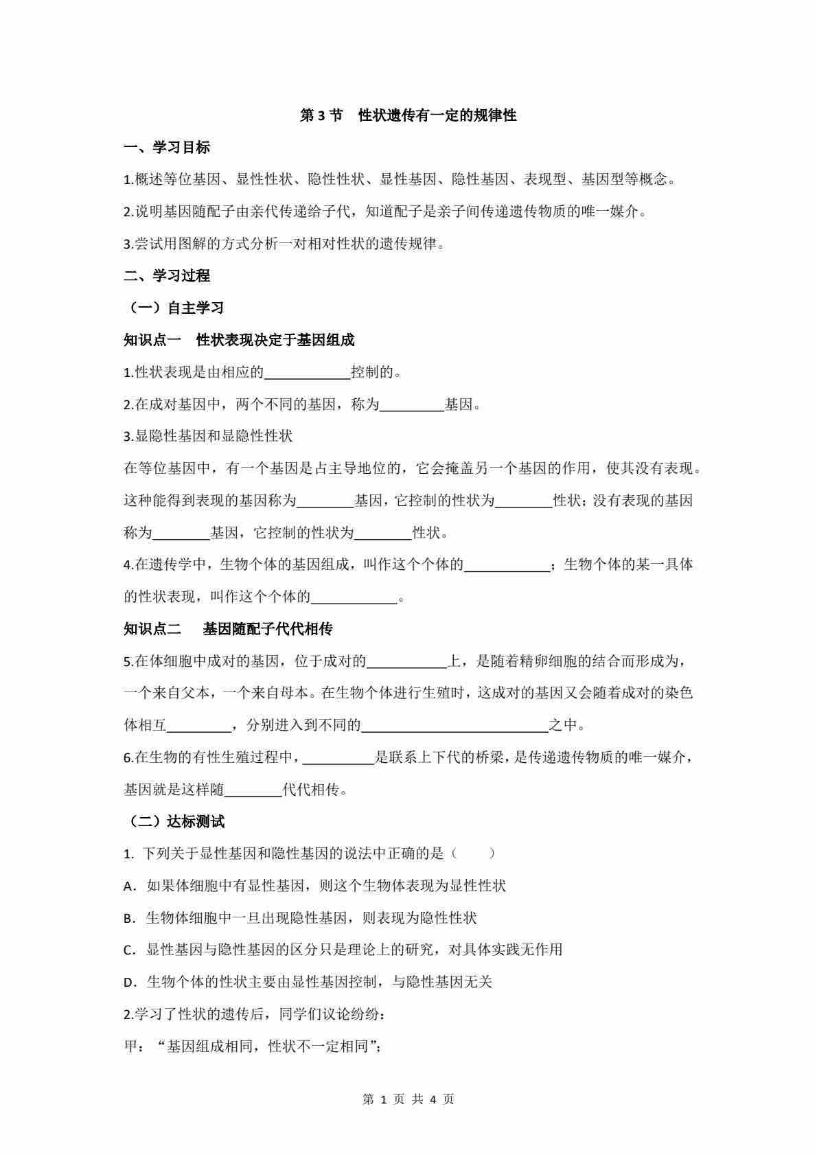 6.16.3 性状遗传有一定的规律性 学案(含答案)