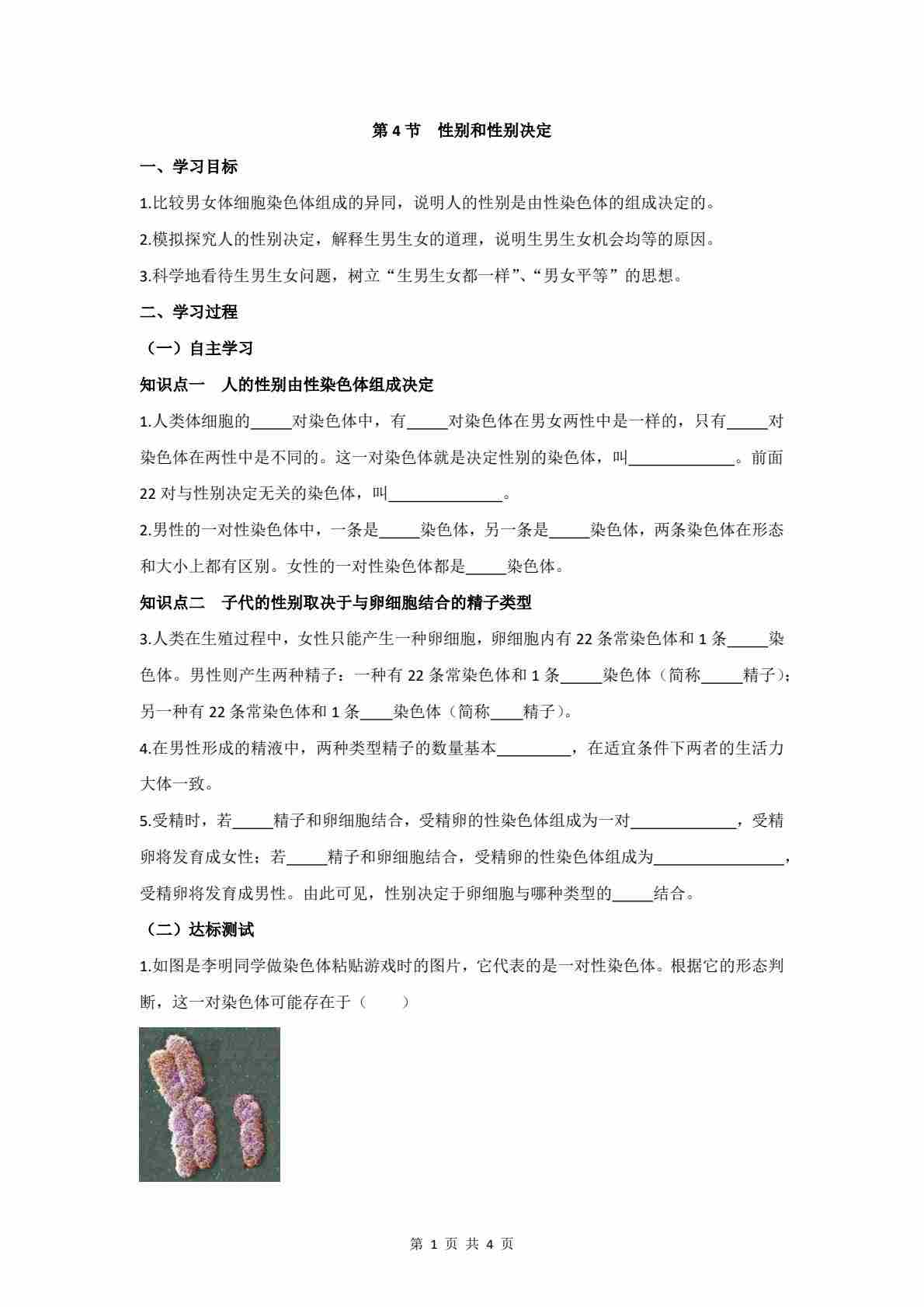 6.16.4 性别和性别决定 学案(含答案)