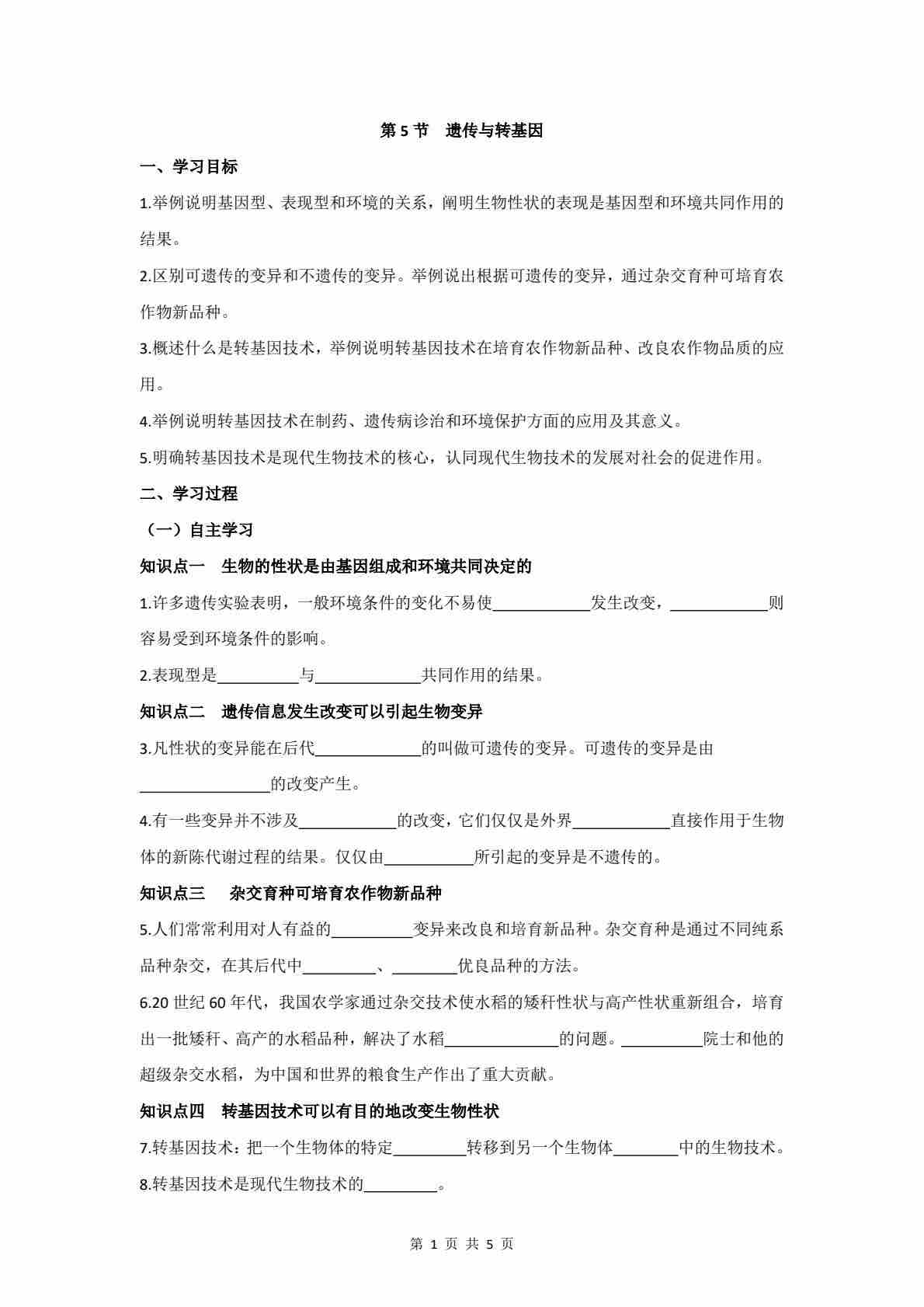 6.16.5 遗传与转基因技术 学案(含答案)
