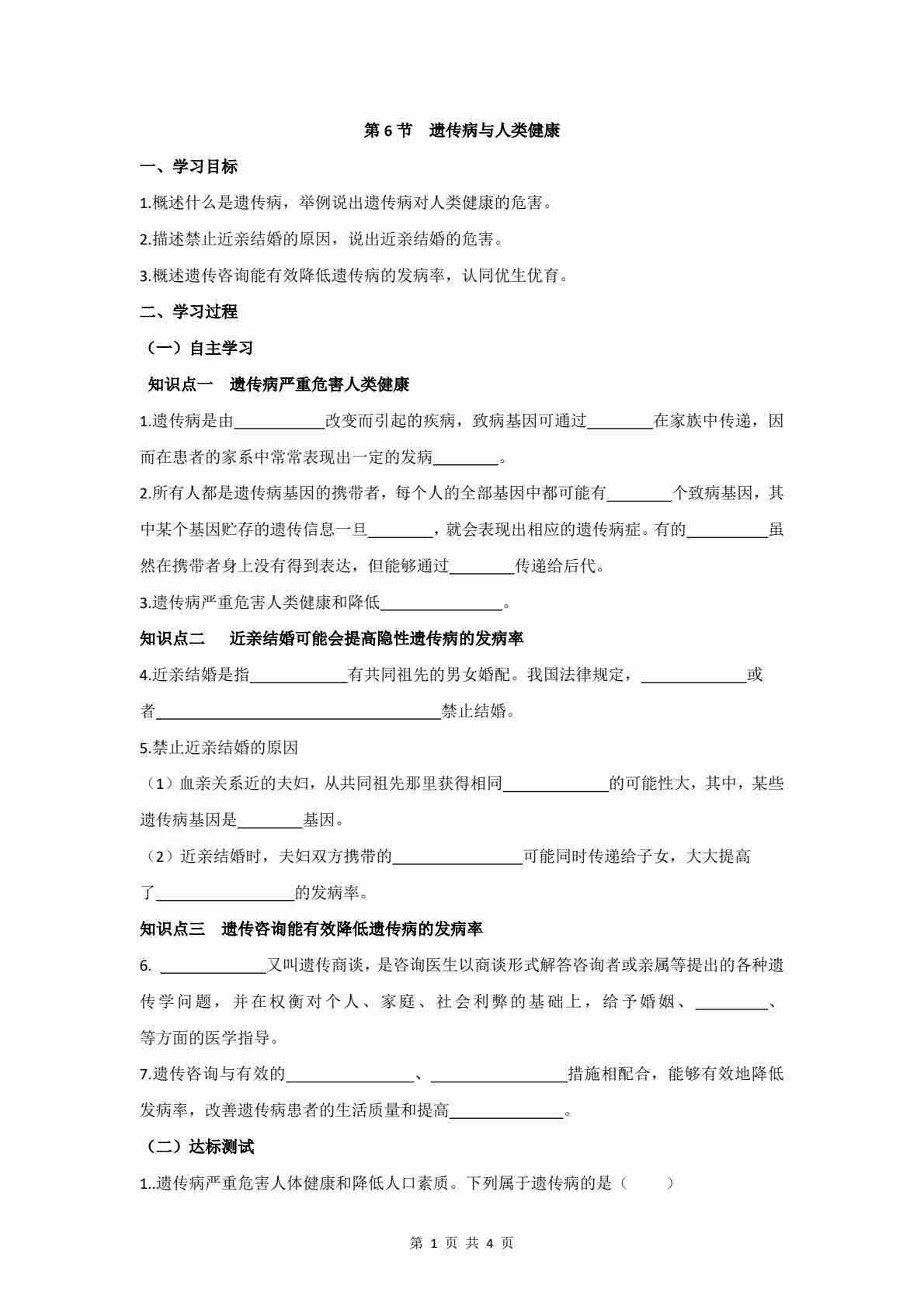 6.16.6 遗传病与人类健康 学案(含答案)
