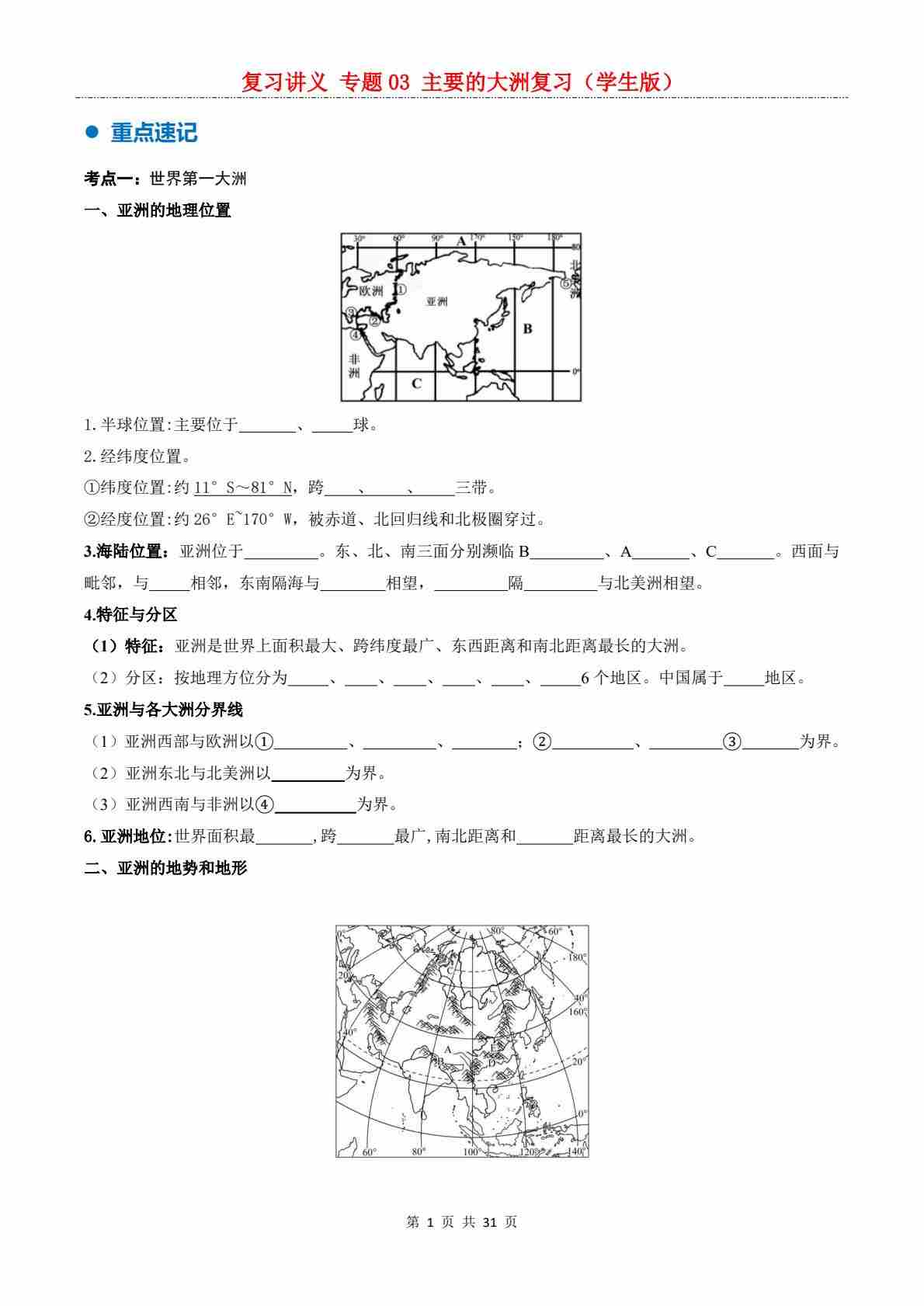 【复习讲义】专题03 主要大州复习---人教版