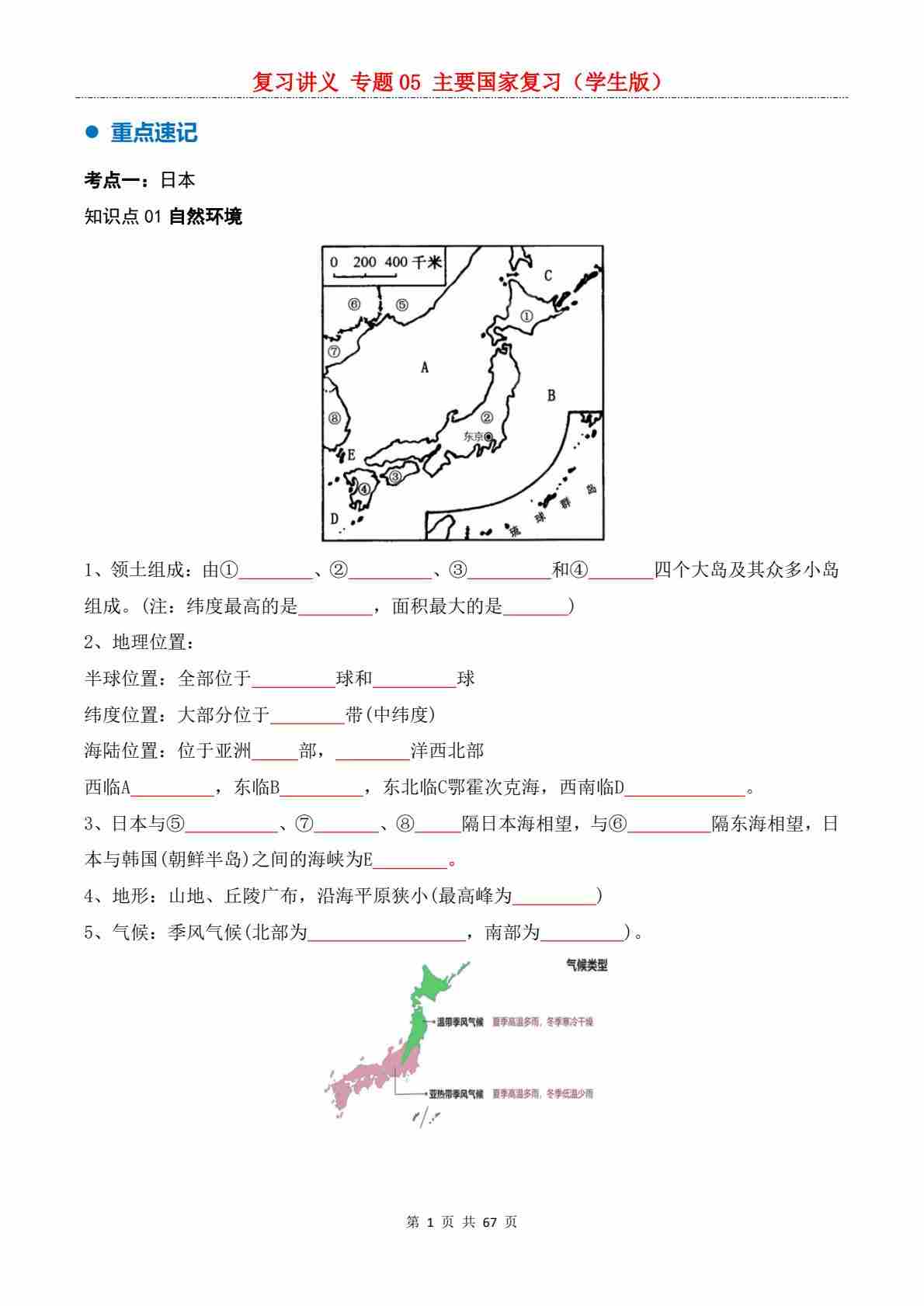 【复习讲义】专题04 主要地区复习---人教版