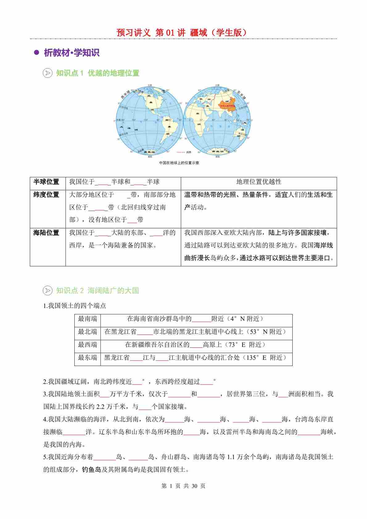 【预习讲义】第一章第01讲 疆域---人教版