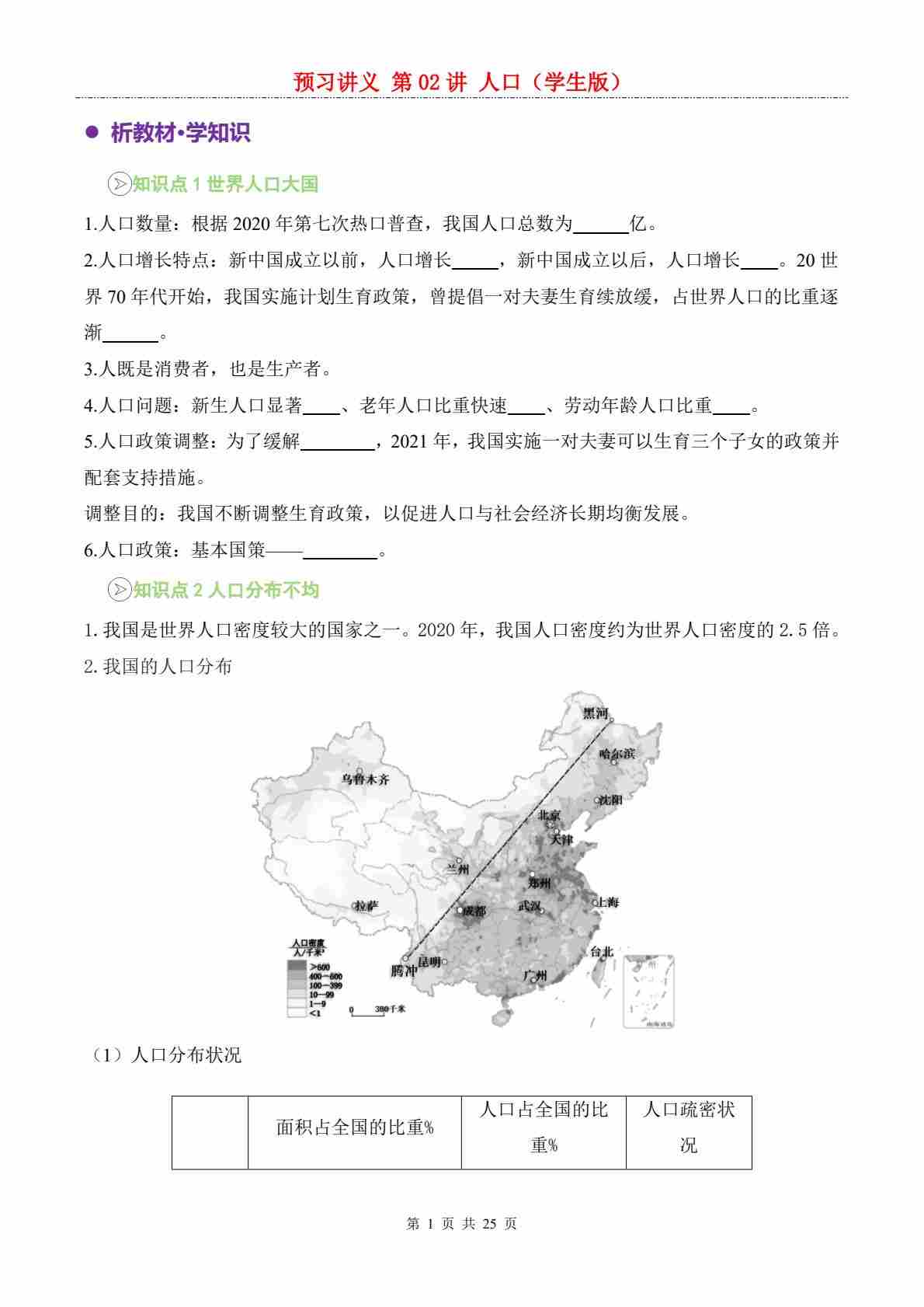 【预习讲义】第一章第02讲 人口---人教版