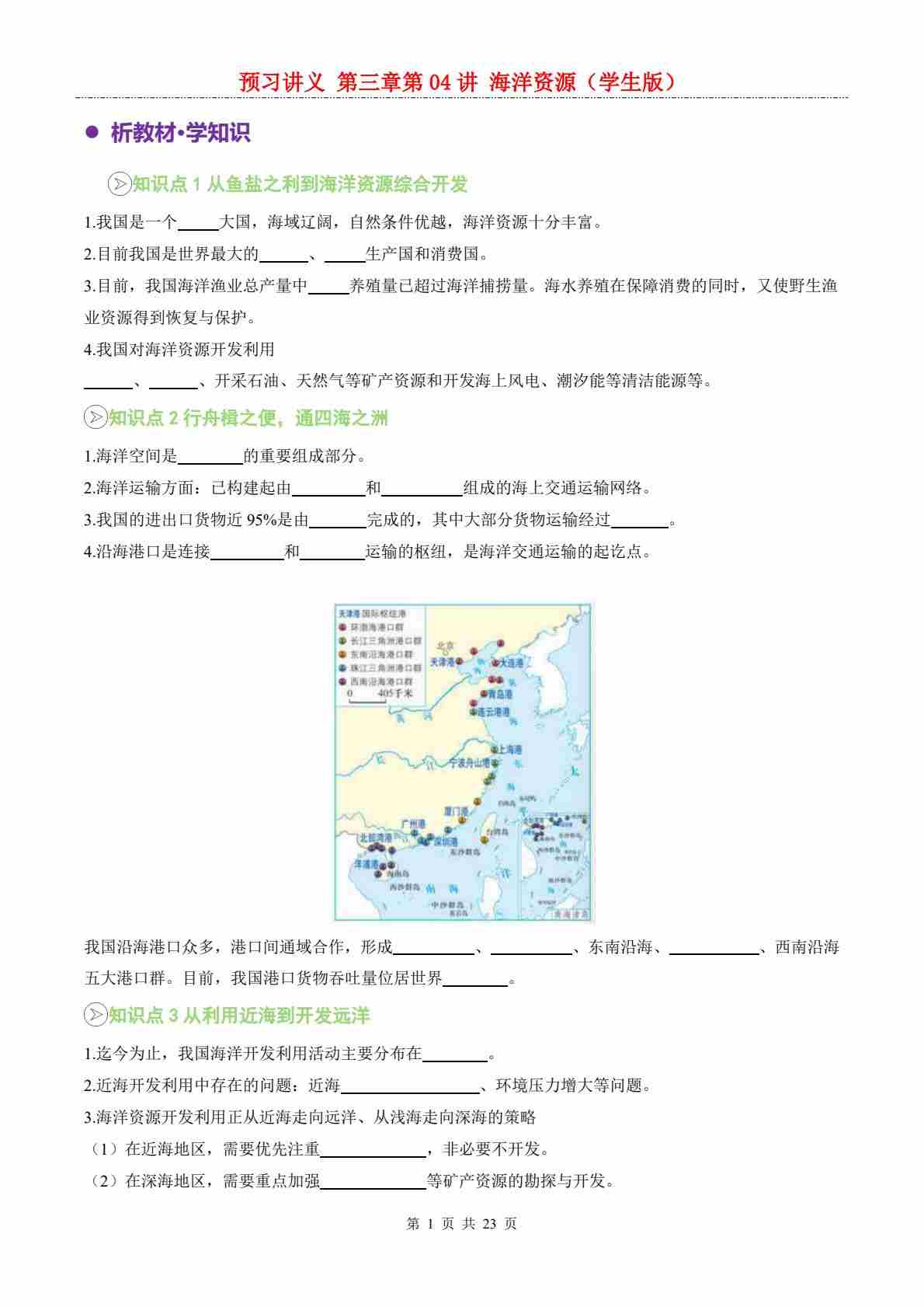 【预习讲义】第三章 第04讲 海洋资源---人教版