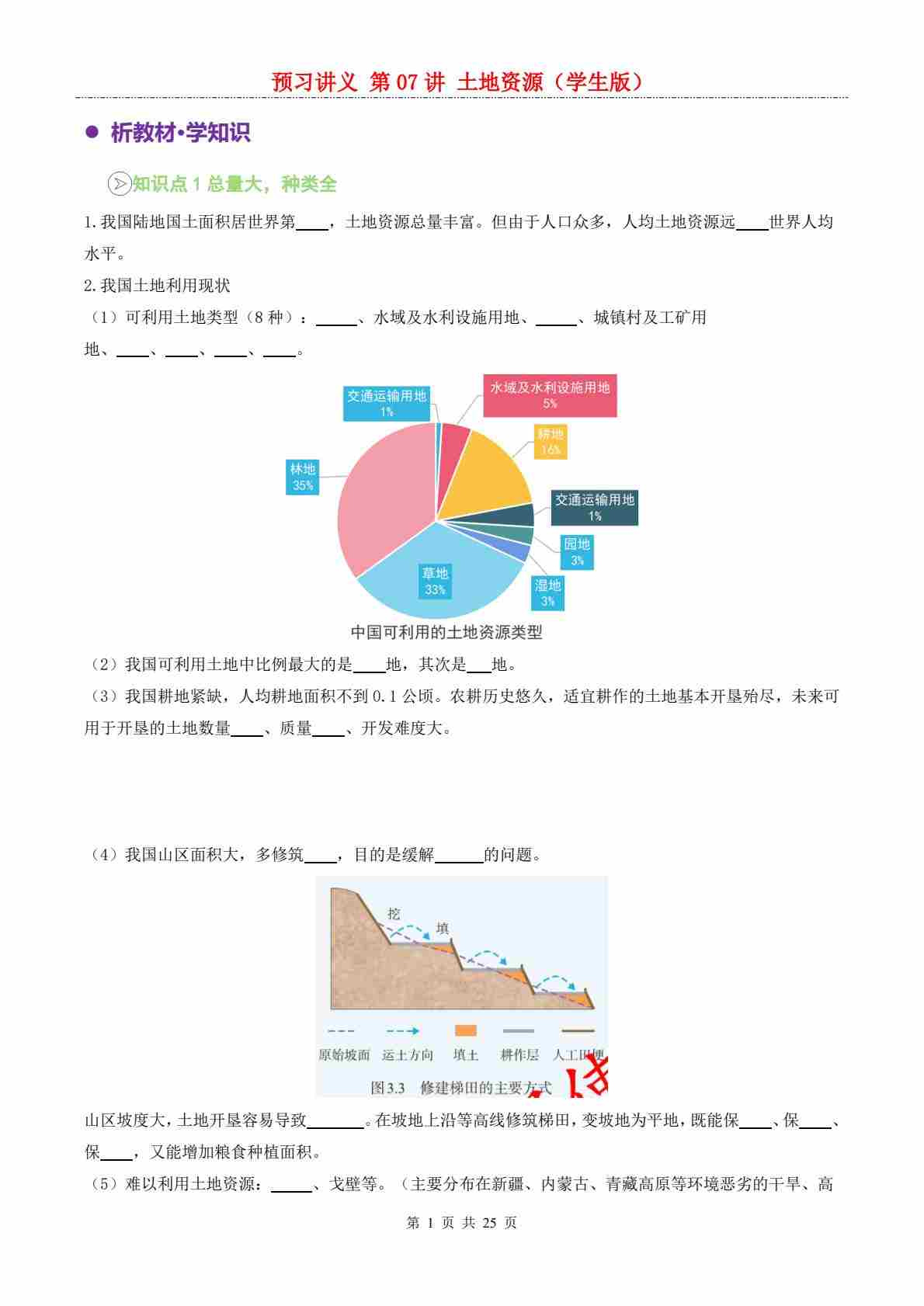 【预习讲义】第三章第01讲 土地资源---人教版