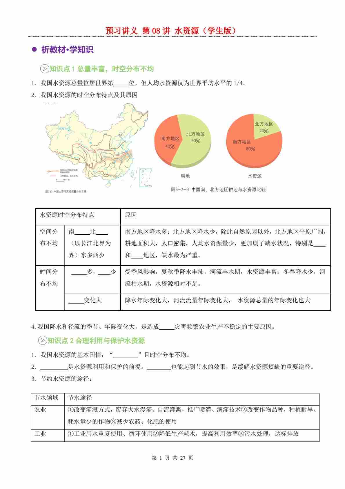 【预习讲义】第三章第02讲 水资源---人教版