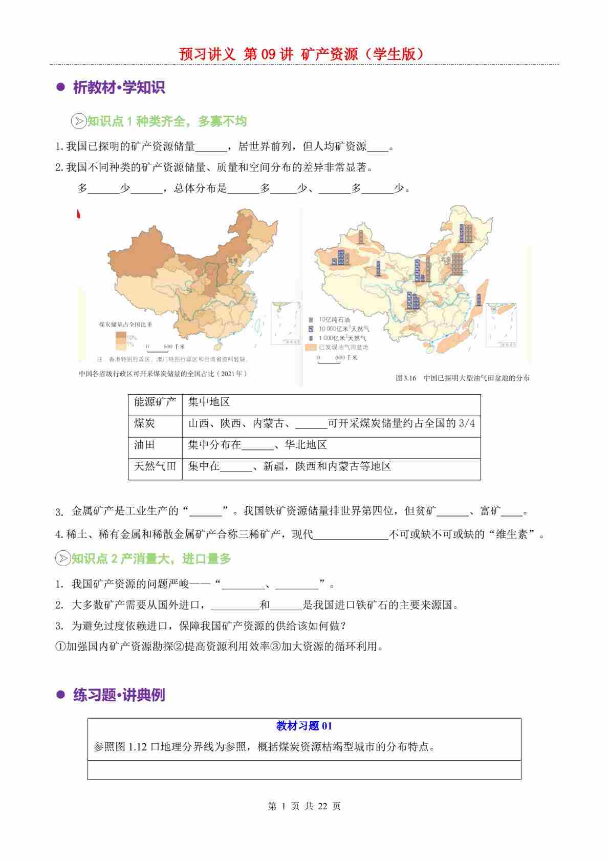 【预习讲义】第三章第03讲 矿产资源---人教版