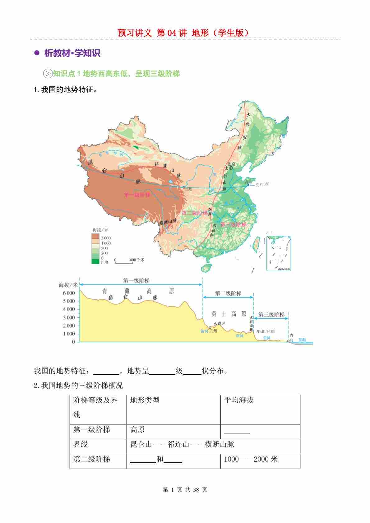 【预习讲义】第二章第01讲 地形---人教版