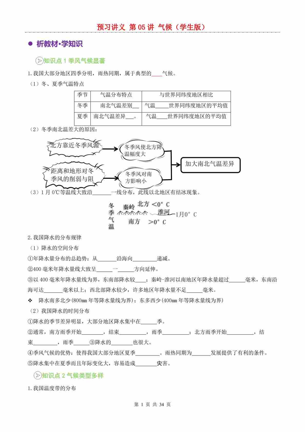 【预习讲义】第二章第02讲 气候---人教版