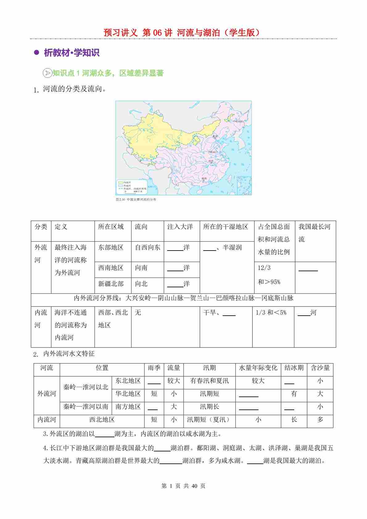 【预习讲义】第二章第03讲 河流与湖泊---人教版
