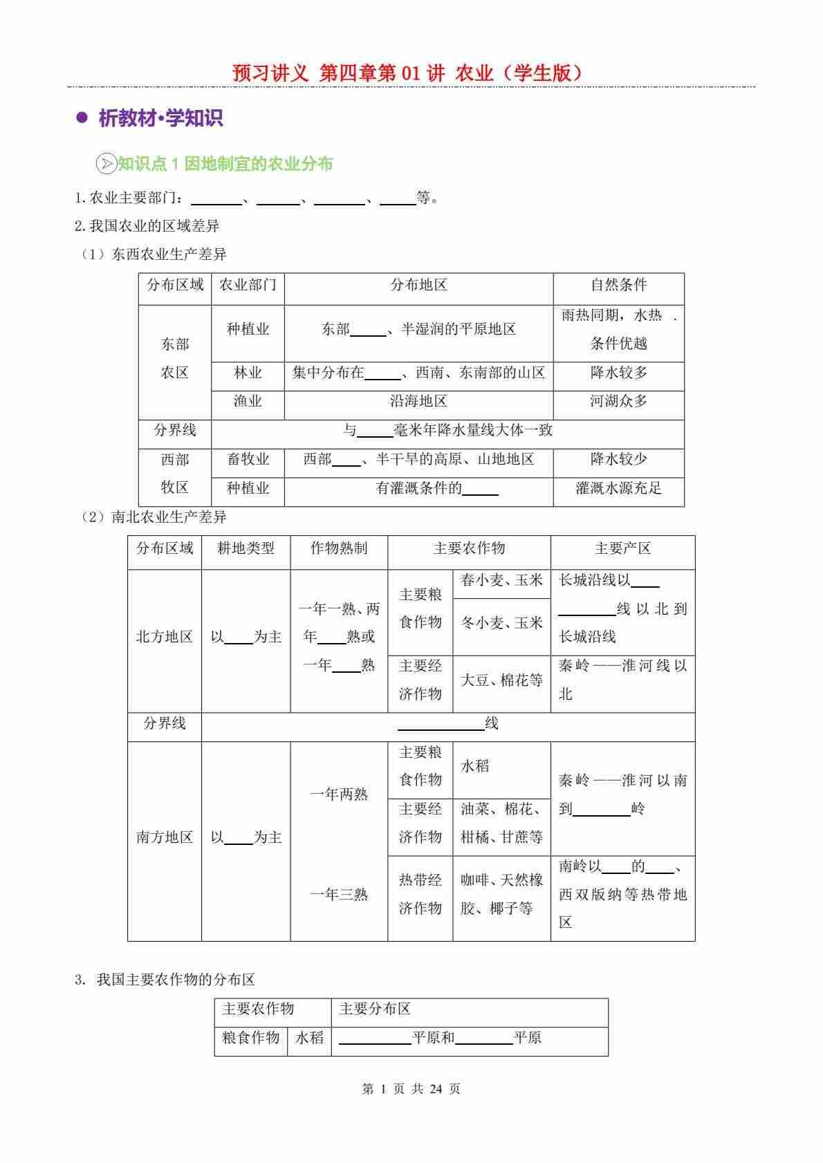 【预习讲义】第四章 第01讲 农业---人教版