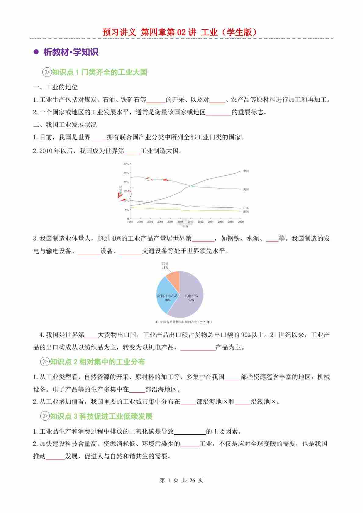 【预习讲义】第四章 第02讲 工业---人教版