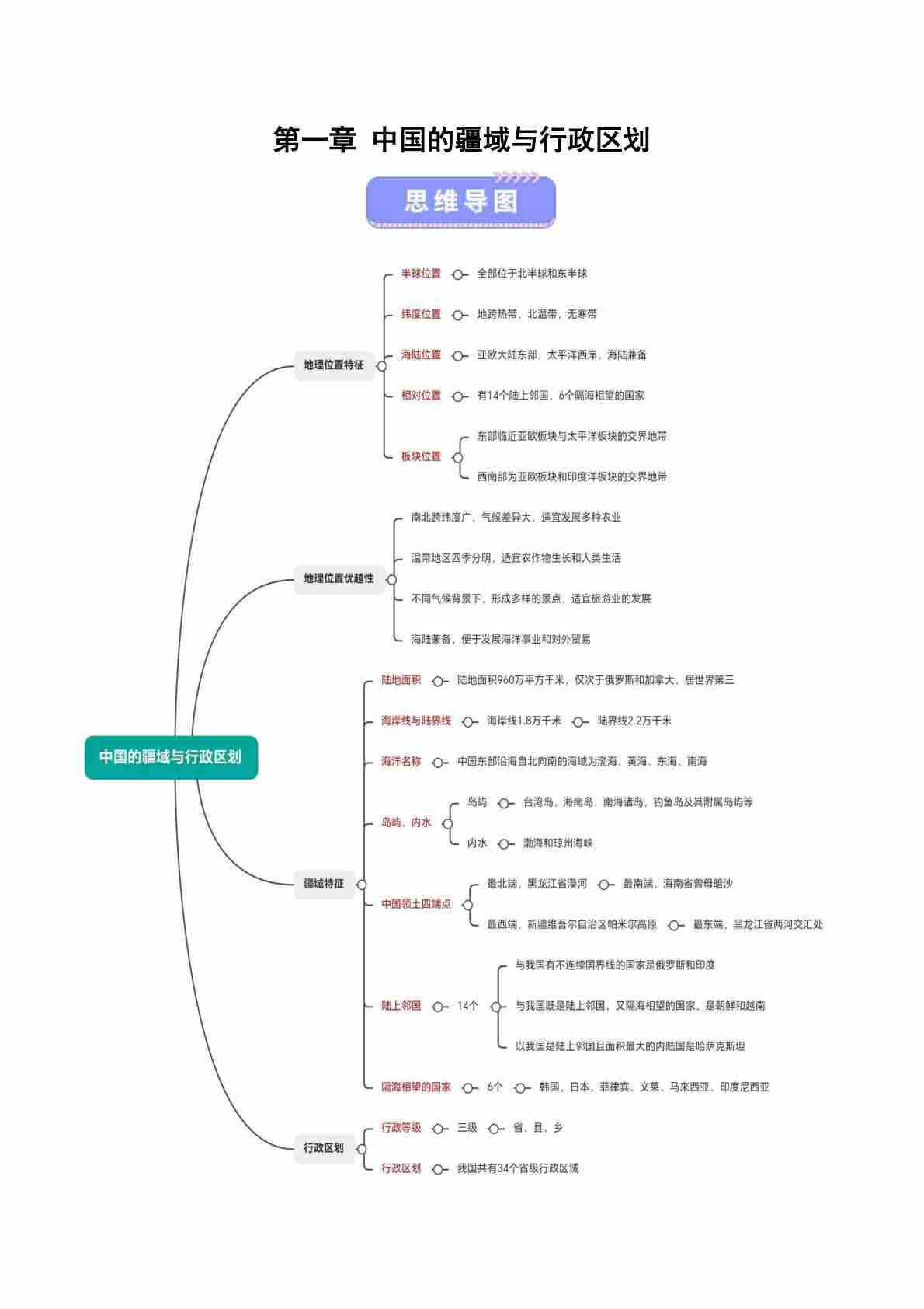 第一章 中国疆域及行政区划(知识清单)