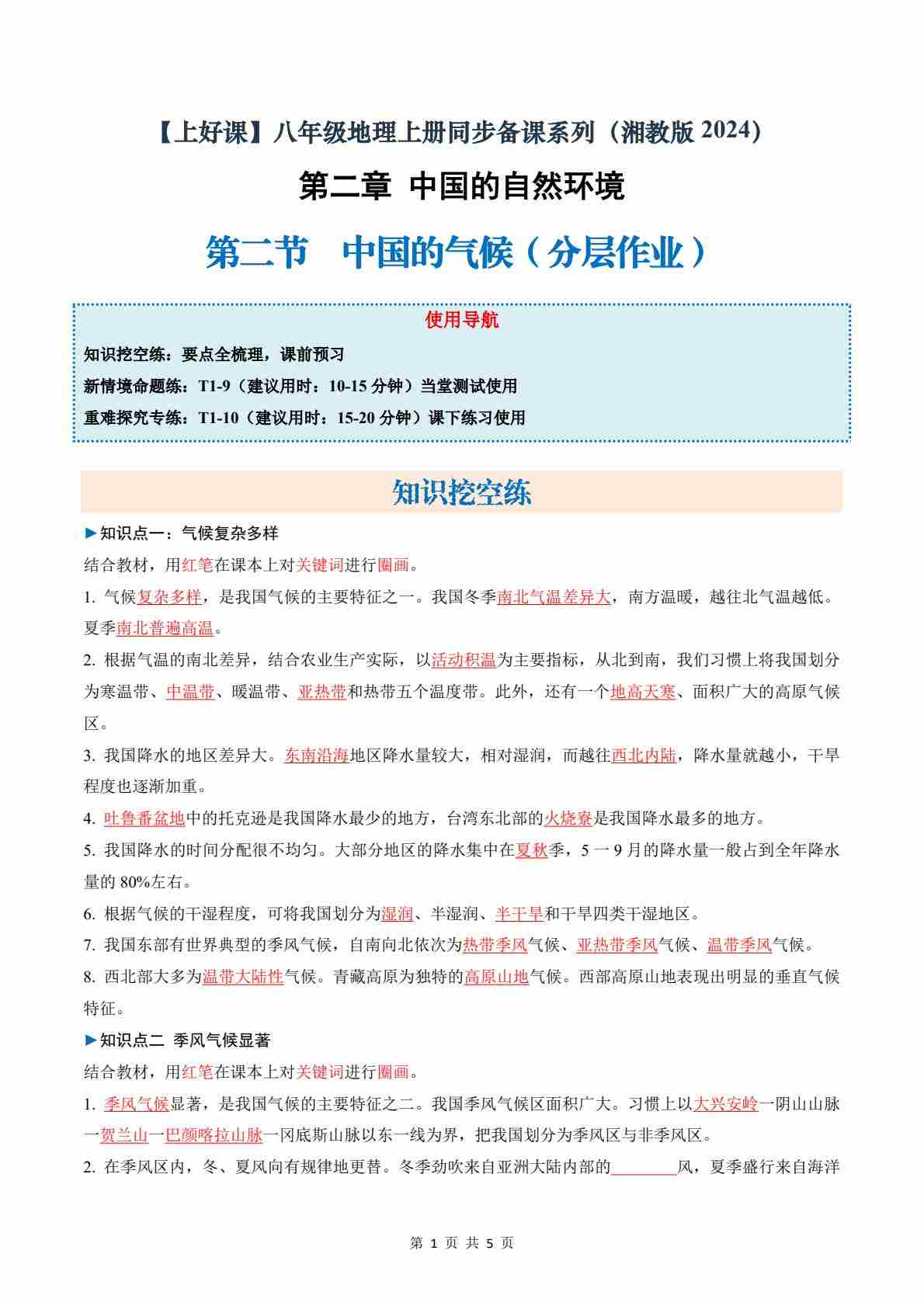 【情境·素养】2.2气候 课时精练(原题)-2025~2026学年人教版(2024版)---人教版