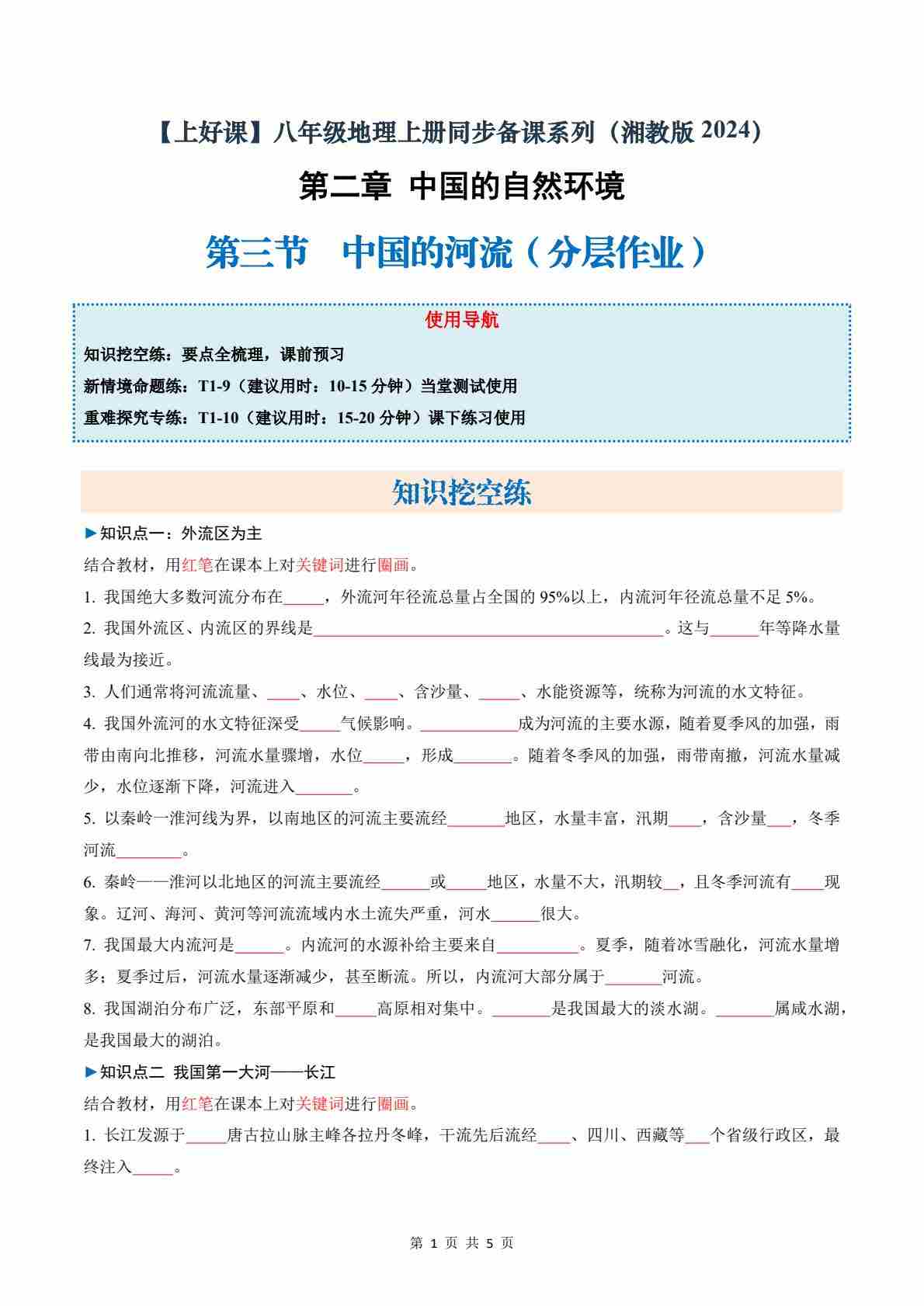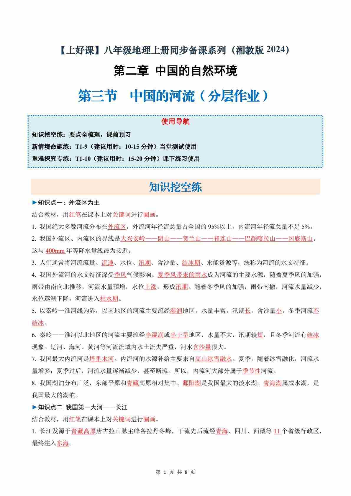 【情境·素养】2.3河流与湖泊 课时精练(原题)-2025~2026学年人教版(2024版)---人教版