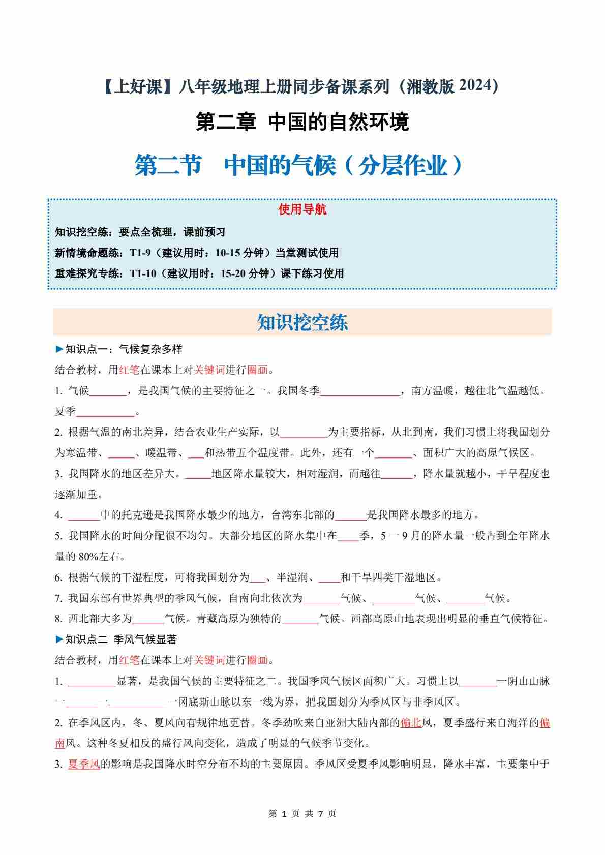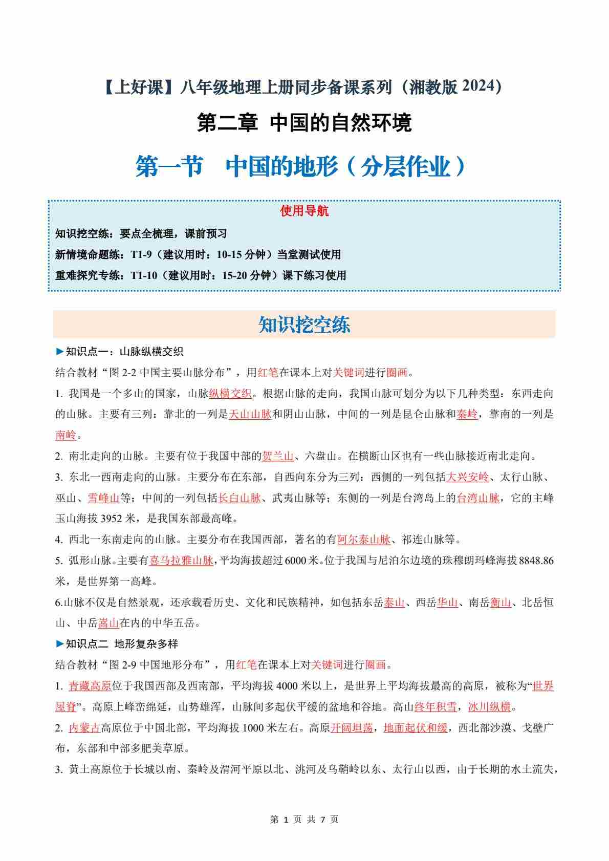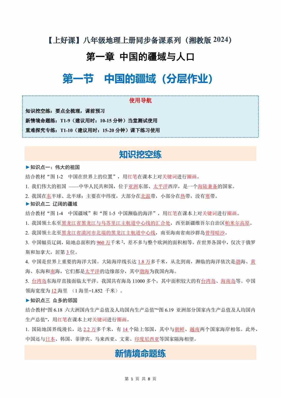 【地理-湘教版】八上电子教材(新版)