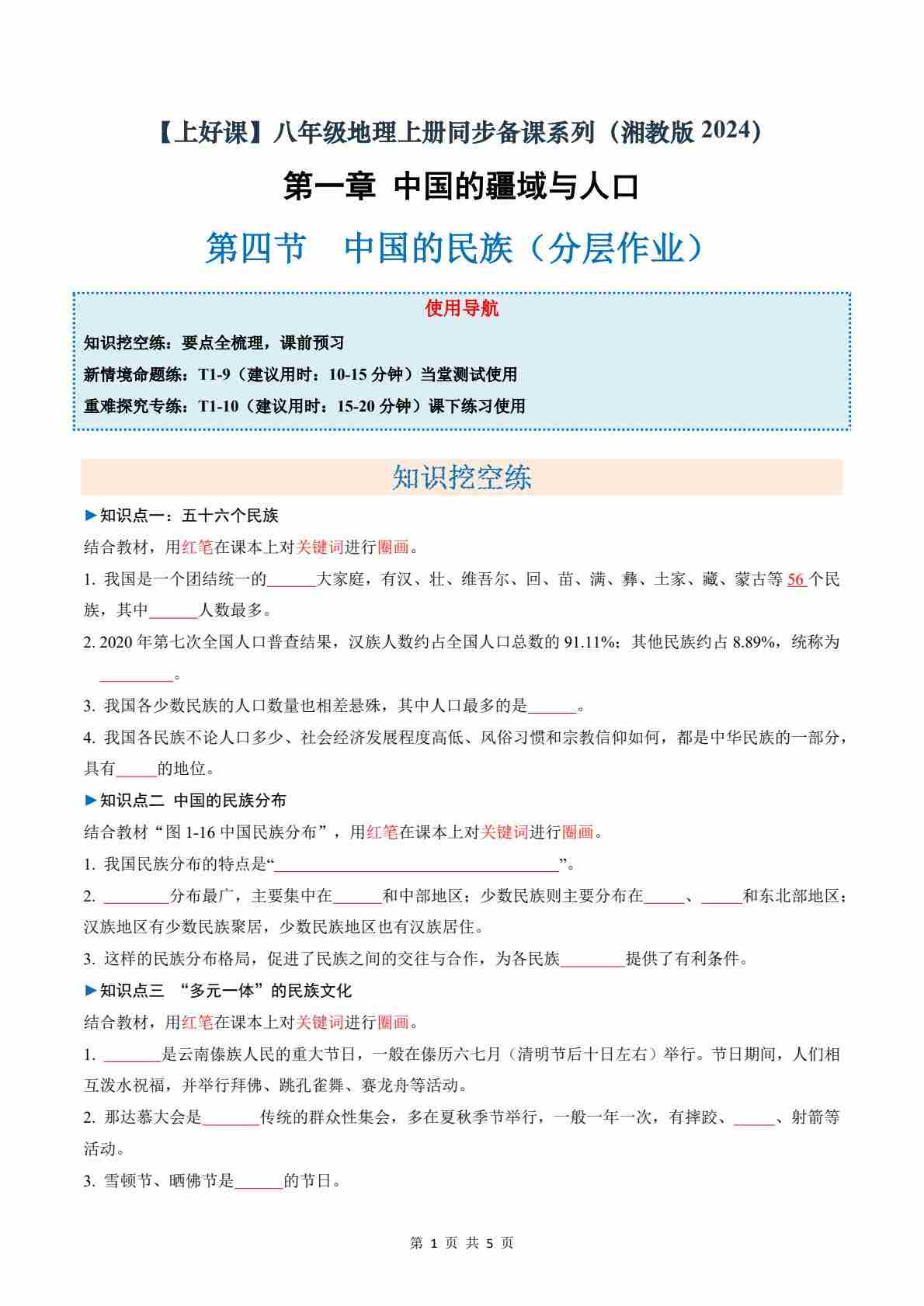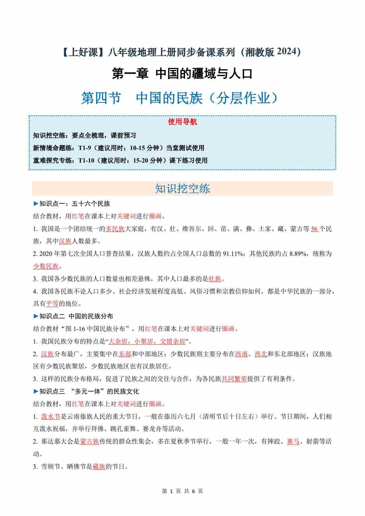 1.4中国的民族(分层作业)(原卷版)