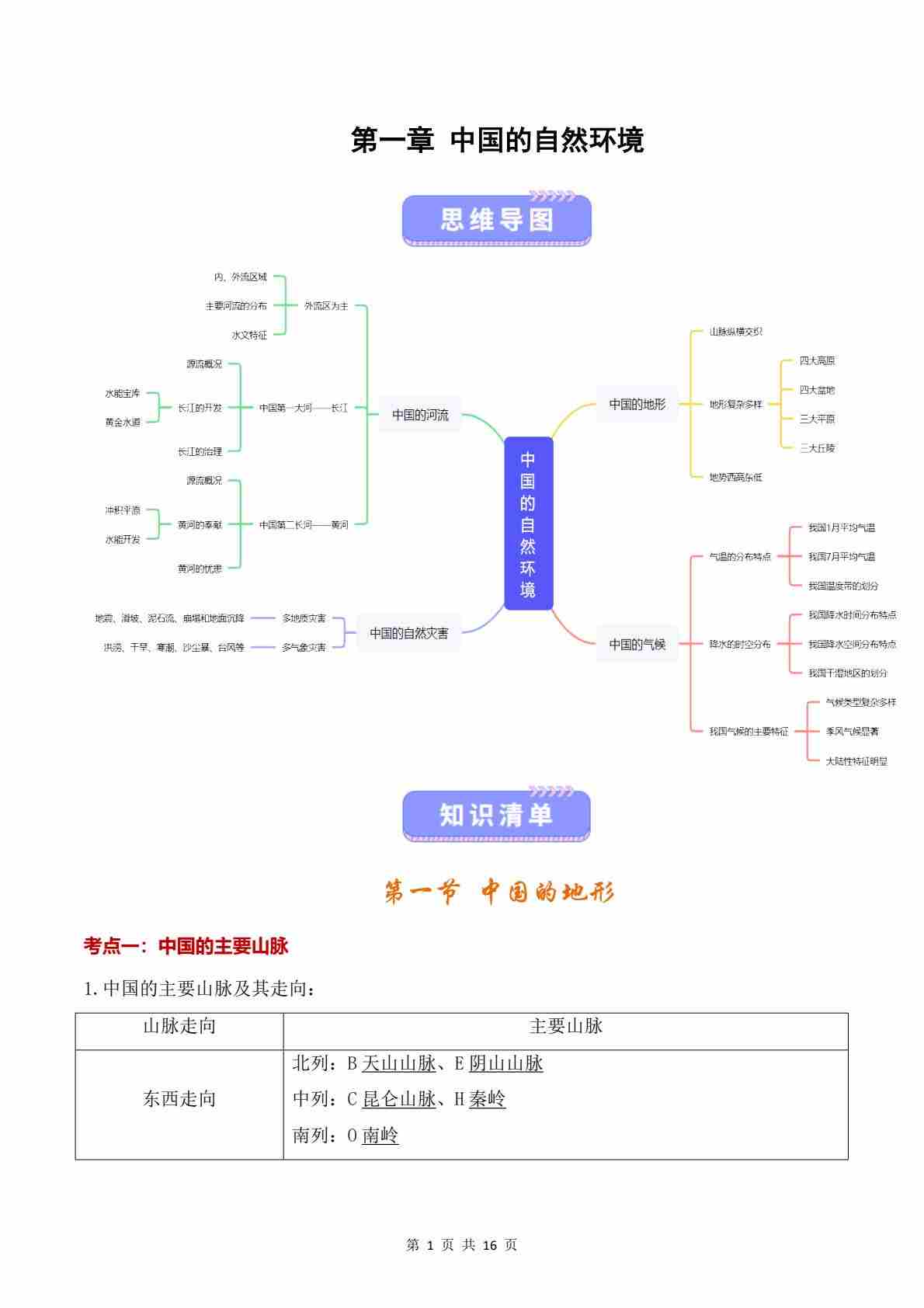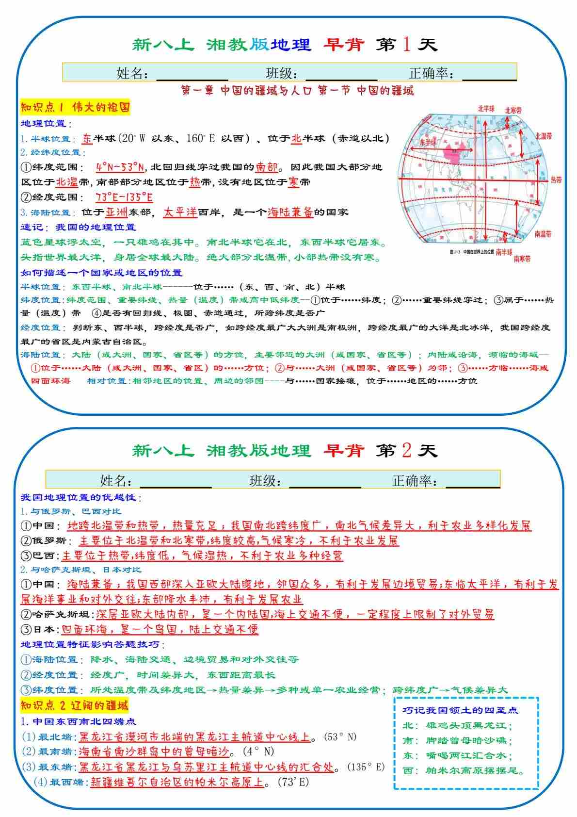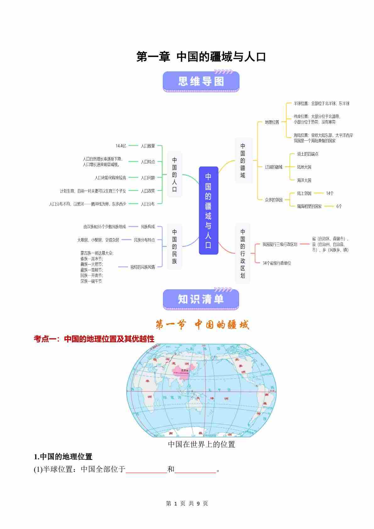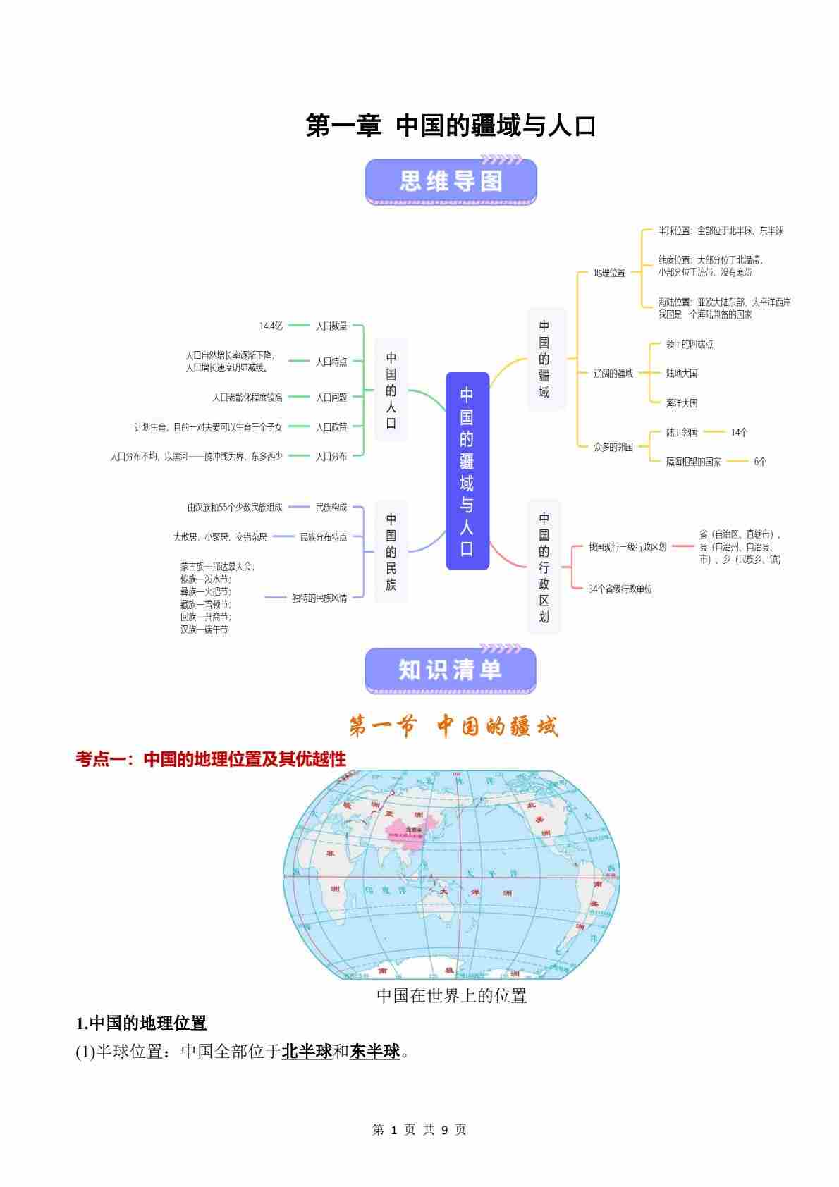 第1章 中国的疆域与人口(知识清单)(背记版)