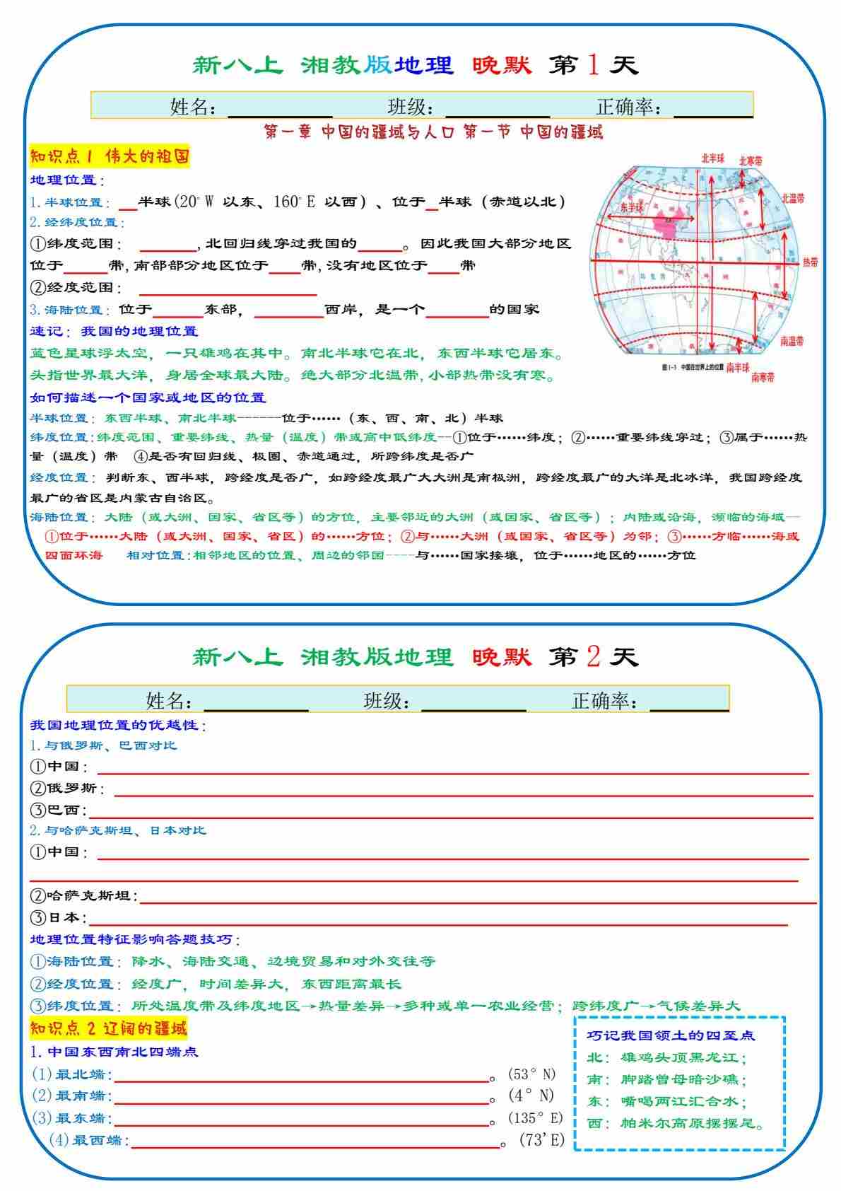 第1章 中国的疆域与人口(知识清单)(挖空版)