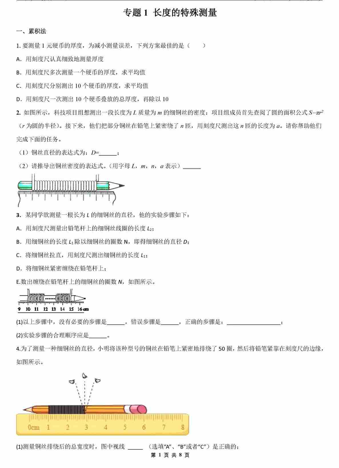 【八上物理】专题1 长度的特殊测量
