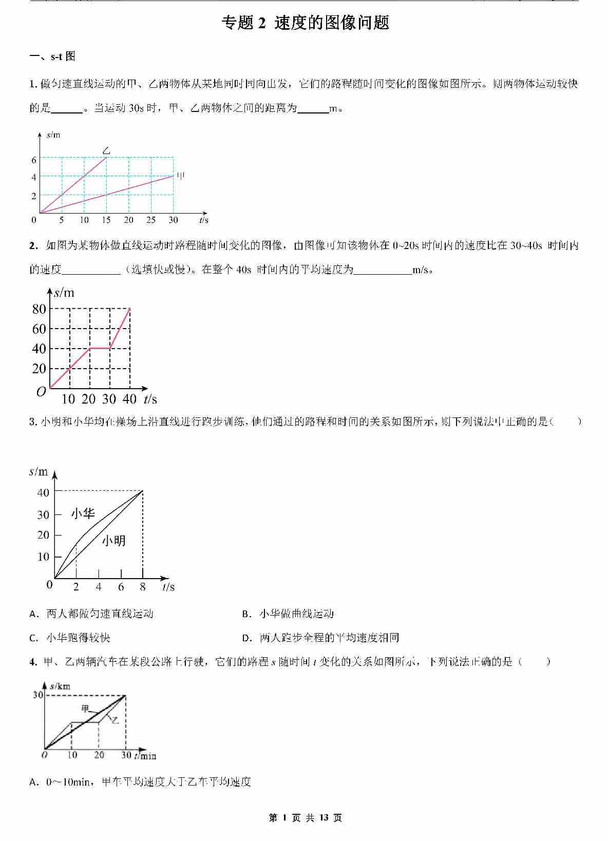 【八上物理】专题2 速度的图像问题