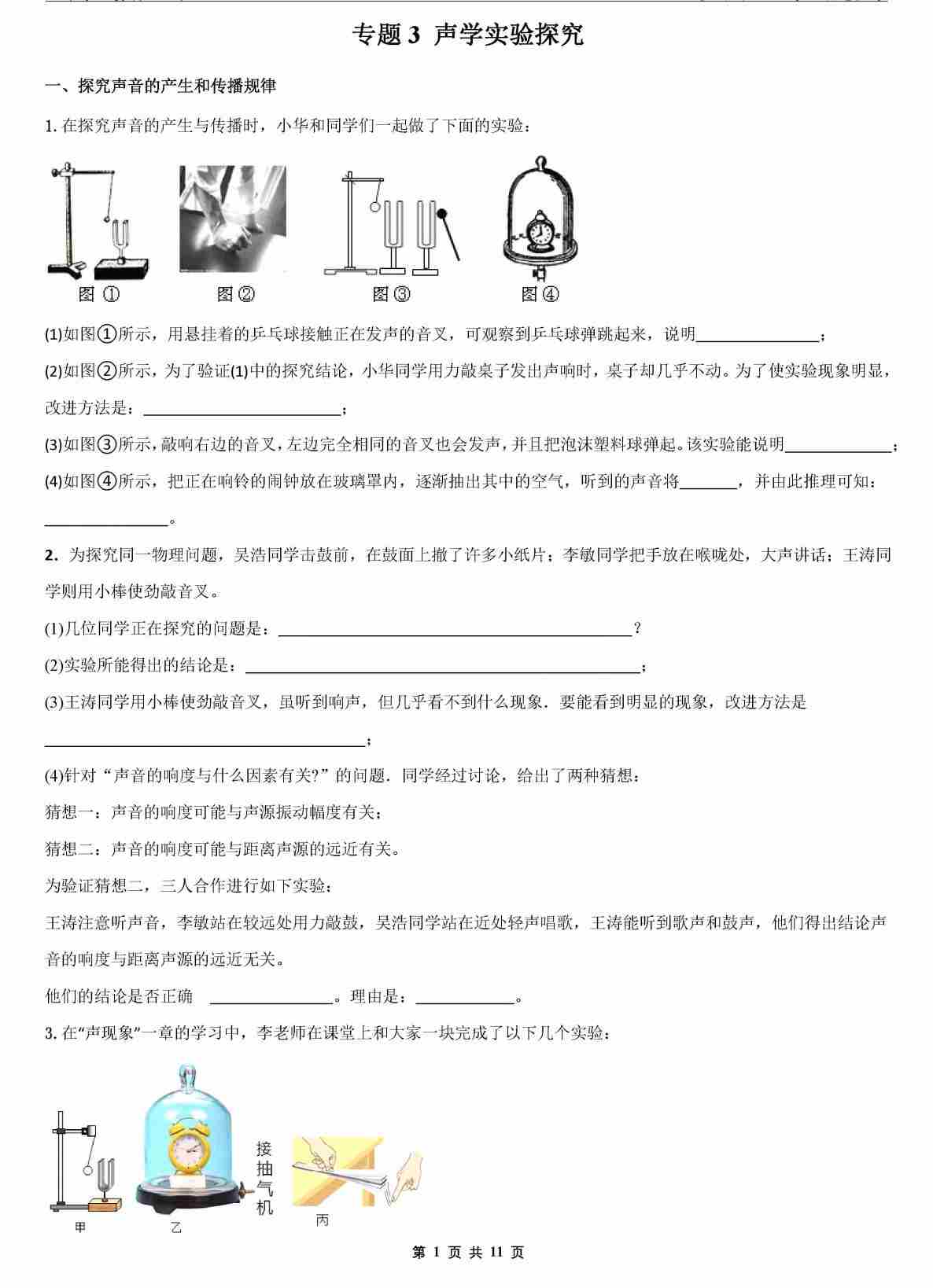 【八上物理】专题3 声学实验探究