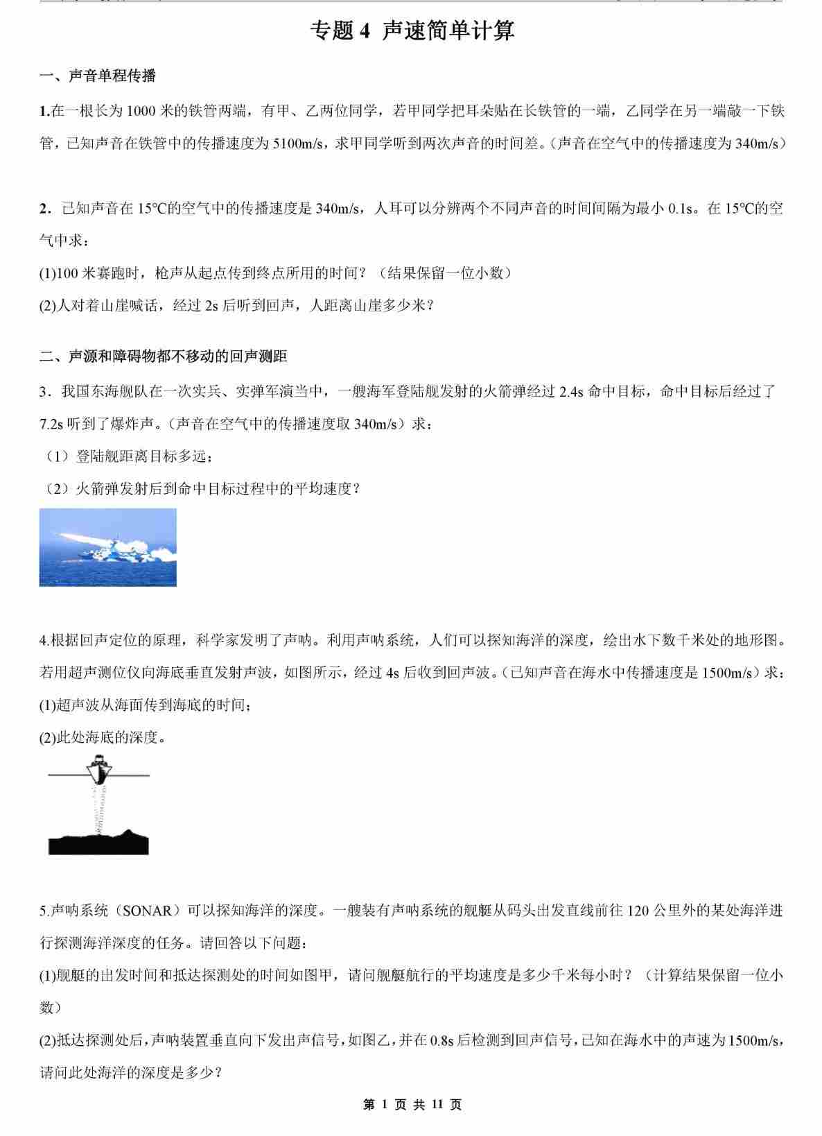 【八上物理】专题4 声速简单计算