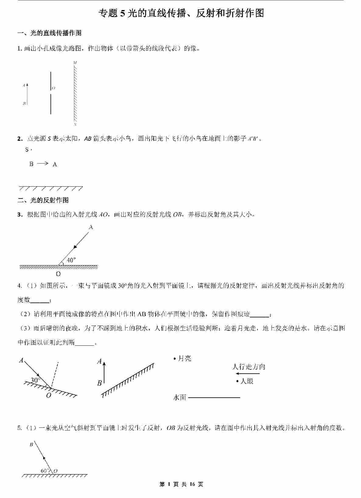【八上物理】专题5 光的直线传播、反射和折射作图