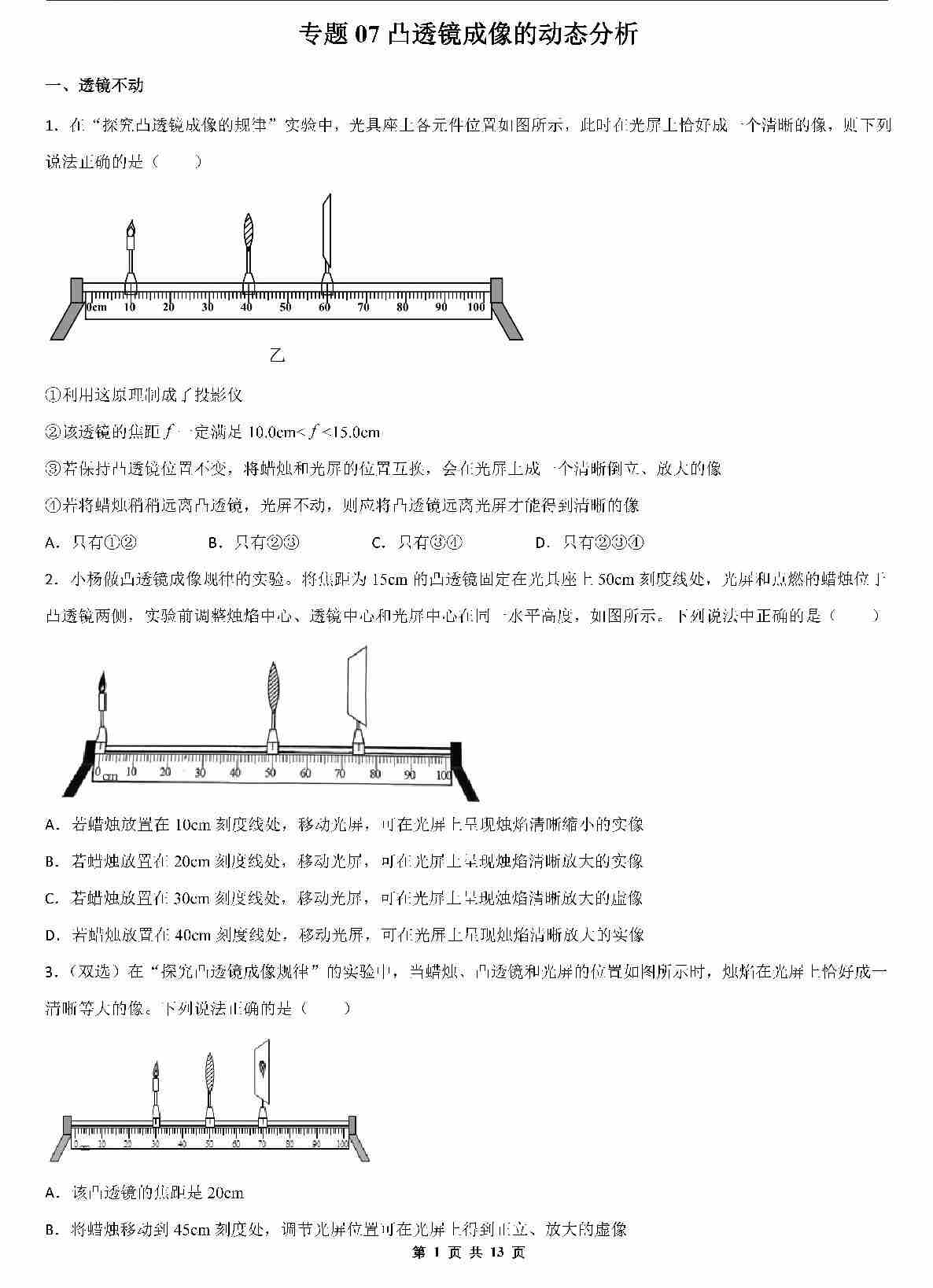 【八上物理】专题7 凸透镜成像的动态分析